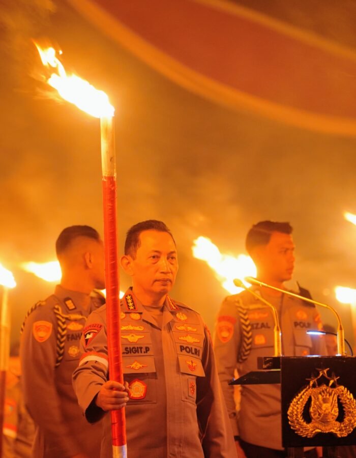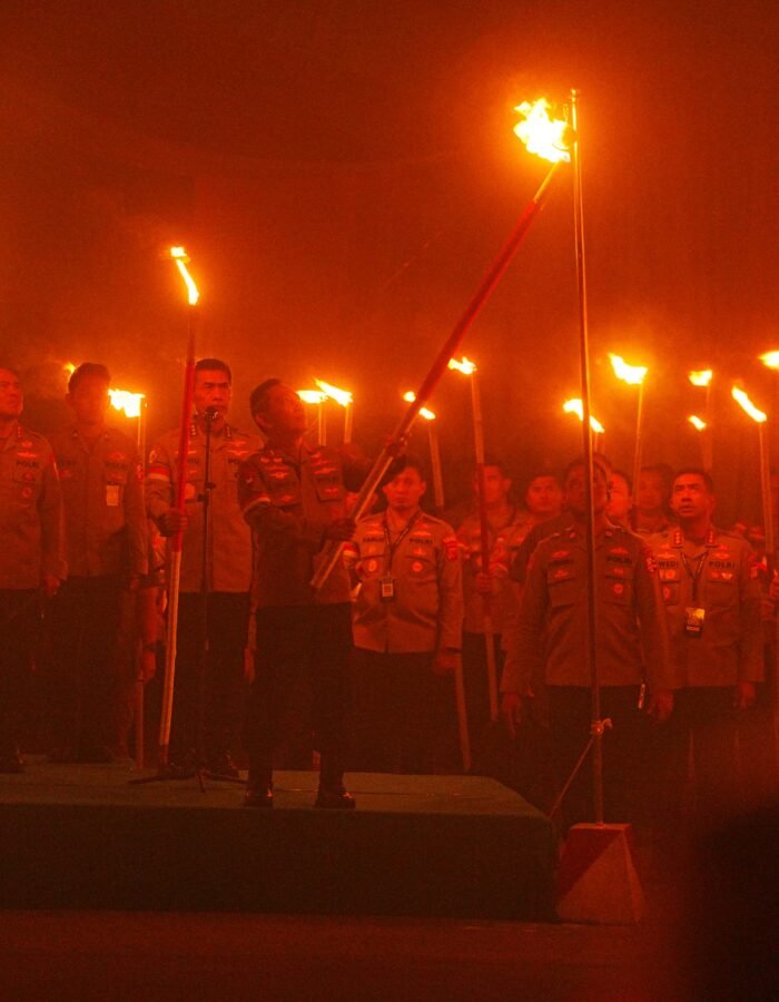 Renungan yang berlangsung dalam suasana gelap dan diterangi ribuan obor itu diikuti oleh Pejabat Utama (PJU) Mabes Polri, para Kapolda, para Karo Ops, serta Kapolres dari seluruh Indonesia, total lebih dari 600 peserta sesuai susunan formasi resmi kegiatan.