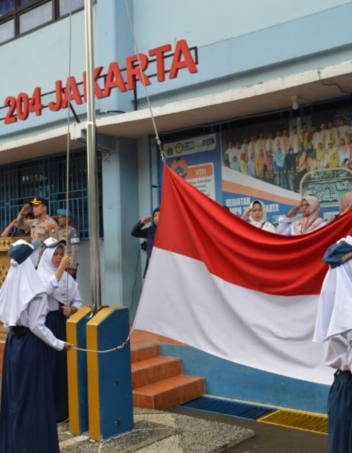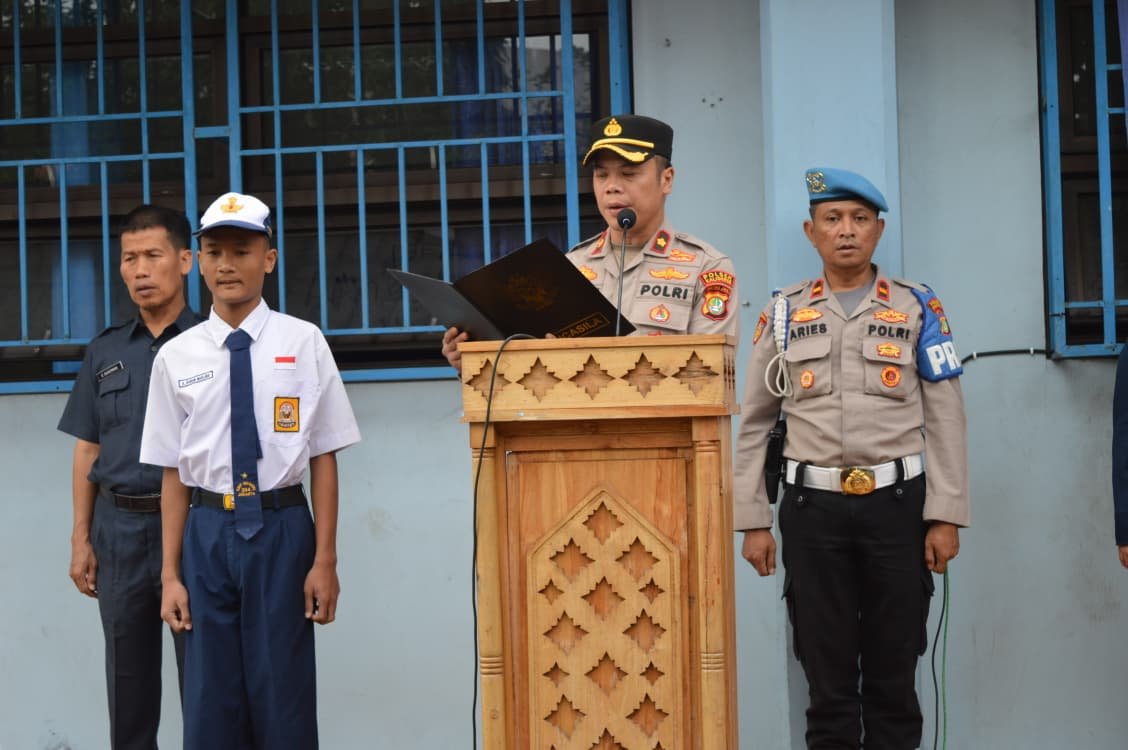 Kapolsek Kalideres Kompol Arnold Julius Simanjuntak, S.E., S.I.K., M.H, hadir sebagai Pembina Upacara Bendera di SMPN 204 Jakarta, Kelurahan Pegadungan, Kalideres, Jakarta Barat.