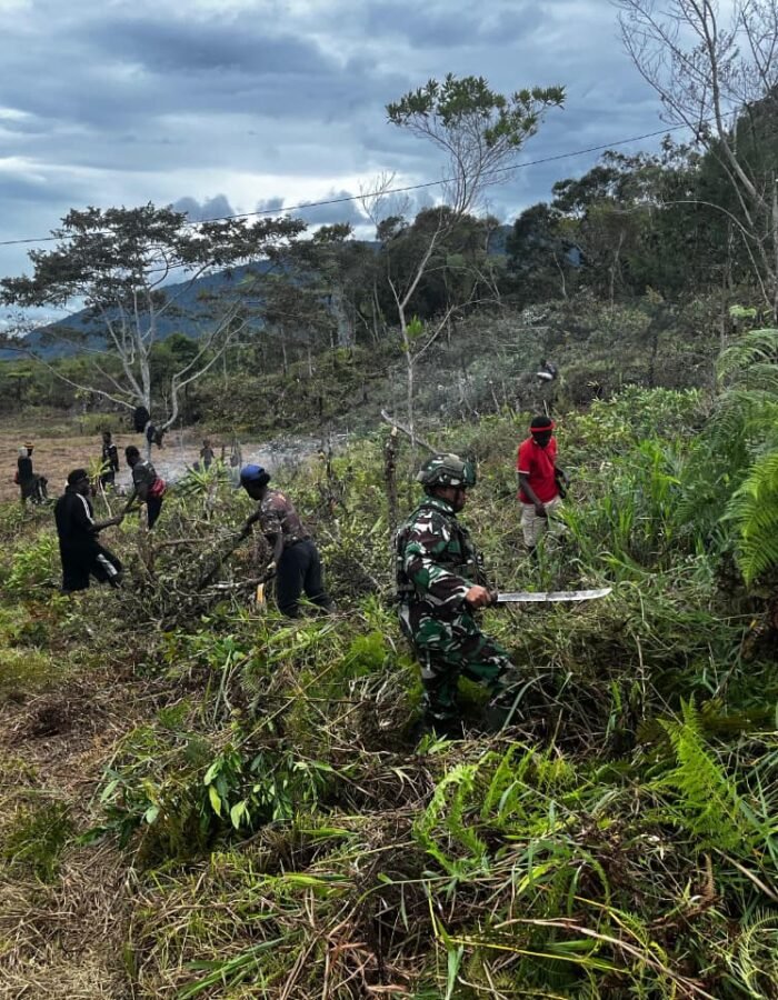 Wujud kepedulian terhadap lingkungan dan semangat melestarikan budaya gotong royong terus diwujudkan oleh satgas pamtas RI-PNG Kewilayahan Yonif 521/DY. Bersama masyarakat setempat, prajurit TNI menggelar karya bakti membersihkan bandara Eragayam di Distrik Eragayam, Papua Pegunungan, (18/11/2025).