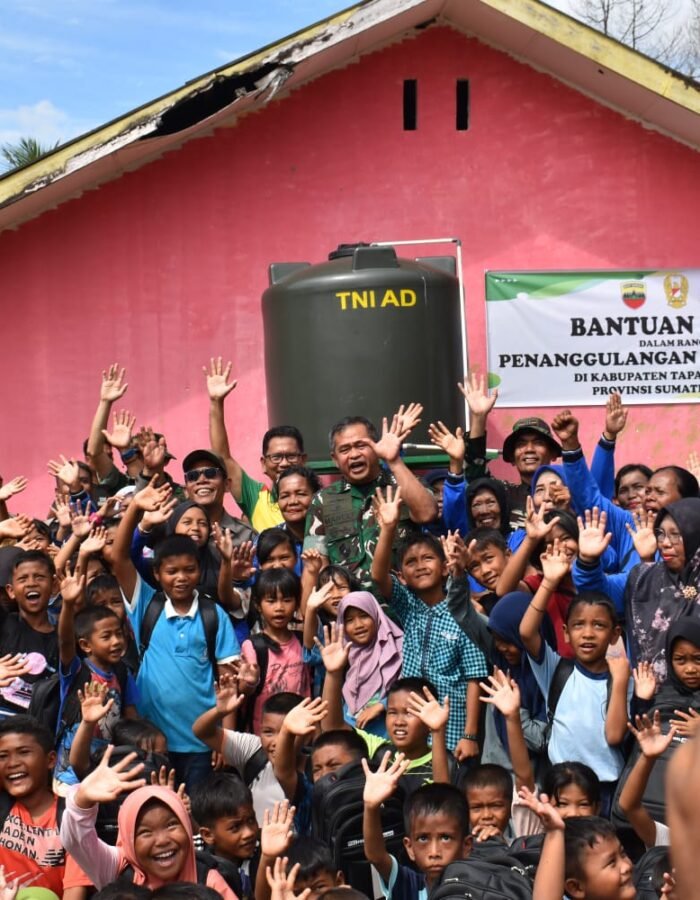 Kasad beserta rombongan turut mengunjungi posko pengungsian di Desa Hutanabolon untuk menyerahkan bantuan kepada warga korban banjir bandang dan tanah longsor. Dalam kesempatan itu, Kasad menekankan pentingnya penyediaan air bersih, khususnya bagi lingkungan sekolah. “Air bersih di sekolah harus tersedia. Ini menjadi kesempatan untuk menyusun perencanaan yang benar-benar baik. Jika data perencanaan kurang, hasilnya bisa berantakan. Siapkan semuanya secara matang, mulai dari jumlah jembatan hingga kebutuhan air bersih, agar daerah ini bisa bangkit menjadi wilayah yang baru,” ujarnya.