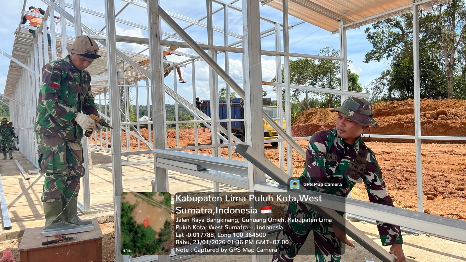 BATAVIAINEWS.COM Kab.50 Kota – Kegiatan rutinitas Karya Bakti yang dilakukan oleh Personel Kodim 0306/50 Kota yang dipimpin oleh Kapten Inf Silsuandi beserta 35 orang anggota, Rabu (21/1/2026) melaksanakan Gotong Royong dalam rangka pembuatan Huntara, Nagari Koto Tinggi, Kecamatan Gunuang Omeh, Kabupaten Lima Puluh Kota.