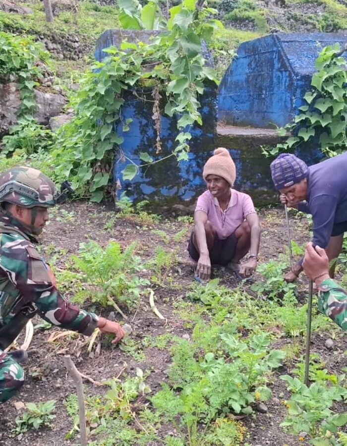 Kali ini personel Satgas mendatangi rumah salah satu warga bernama ibu Yosef (48th) tidak hanya sekedar bersilaturahmi, tetapi juga turut membantu Ibu Yosef membersihkan rumput di kebunnya, Ibu Yosef pun menyampaikan rasa terima kasihnya atas kepedulian yang diberikan oleh personel Satgas Yonif 521/DY. Kegiatan dilakukan dengan penuh semangat kebersamaan, mulai dari merapikan rumput, mencangkul hingga menata kebun sekitar agar terlihat lebih rapi dan asri.