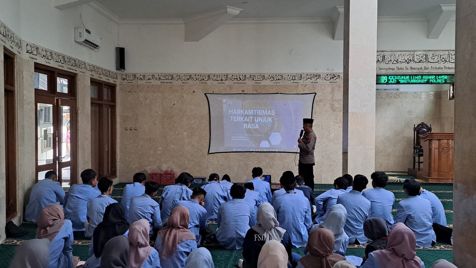 Dalam pemaparannya, Kanit Bintibsos Ipda Moh. Komaruzaman menegaskan bahwa mahasiswa adalah generasi penerus bangsa yang memiliki peran strategis dalam menjaga situasi aman dan kondusif.