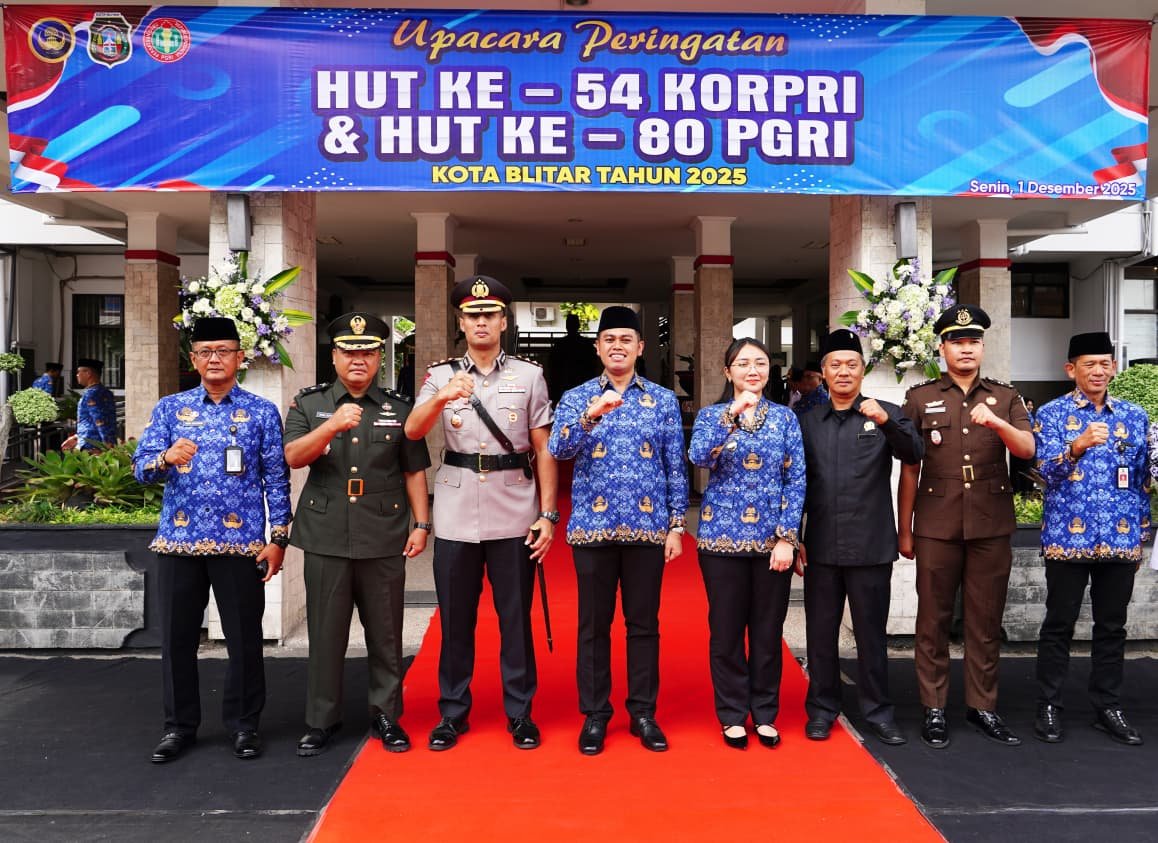 Blitar, BATAVIAINEWS.COM – kepala Staf Kodim 0808/Blitar Mayor Inf Imam Suyoso menghadiri Upacara Peringatan HUT Korp Pegawai Republik Indonesia (Korpri) ke- 54 dan HUT PGRI ke 80 Tahun 2025 di Halaman Kantor Walikota Blitar, Senin (01/12/2025).