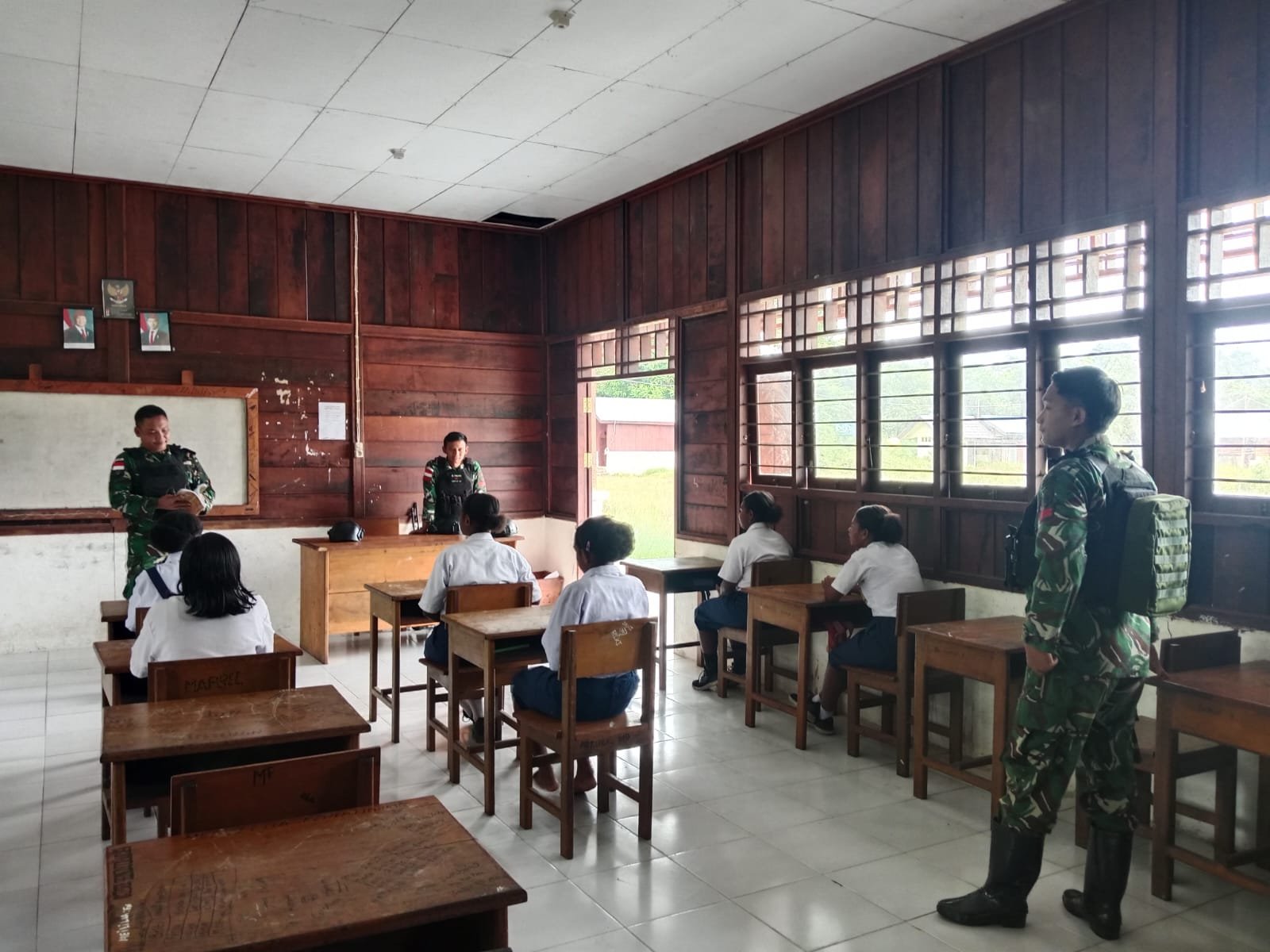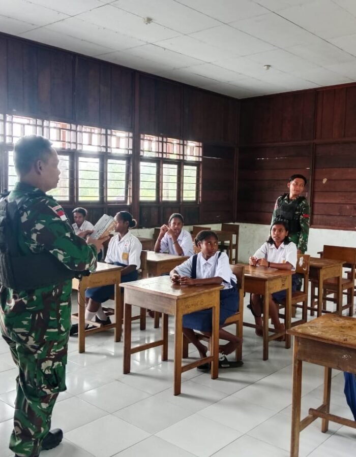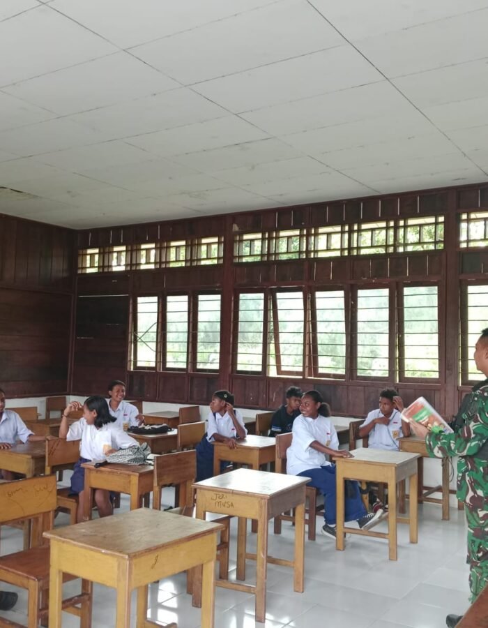 BATAVIAINEWS.COM AROBA, 27 Januari 2026 ] – Dalam rangka mendukung peningkatan kualitas pendidikan di wilayah perbatasan, Sertu sukiswandi Selaku wadanpos Satgas Pamtas RI–PNG Kewilayahan Yonif 410/Alugoro Pos Aroba melaksanakan kegiatan Tenaga Pendidik (Gadik) di SMP Negeri Satap Aroba, Distrik Aroba, Kabupaten Teluk Bintuni, Papua Barat., (23/1)