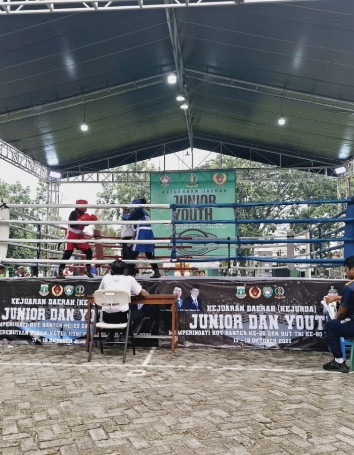 Bataviainews.com PANDEGLANG — Dalam rangka memperingati Hari Ulang Tahun (HUT) ke-25 Provinsi Banten dan HUT ke-80 Tentara Nasional Indonesia (TNI), Komando Distrik Militer (Kodim) 0601/Pandeglang menggelar Kejuaraan Tinju Junior Youth Tahun 2025. Kegiatan berlangsung meriah pada Senin malam pukul 20.00 WIB hingga 23.15 WIB di Lapangan Kodim 0601/Pandeglang, Jl. Raya Pandeglang, dengan diikuti sekitar 100 orang peserta dan tamu undangan.(20 Oktober 2025)