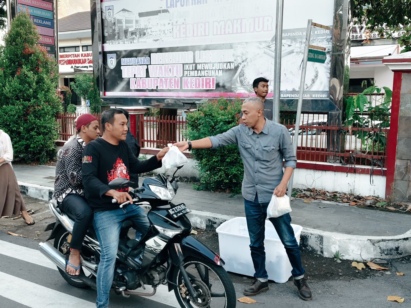 BATAVIAINEWS.COM KEDIRI – KPU Kabupaten Kediri menggelar aksi bagi-bagi takjil dan buka puasa bersama di depan Kompleks Kantor Bagawanta Bhari, Jl. Pamenang Kediri, Kamis (5/3/2026). Kegiatan ini merupakan bentuk kepedulian kepada masyarakat, terutama mereka yang masih dalam perjalanan dan tidak sempat berbuka puasa di rumah.