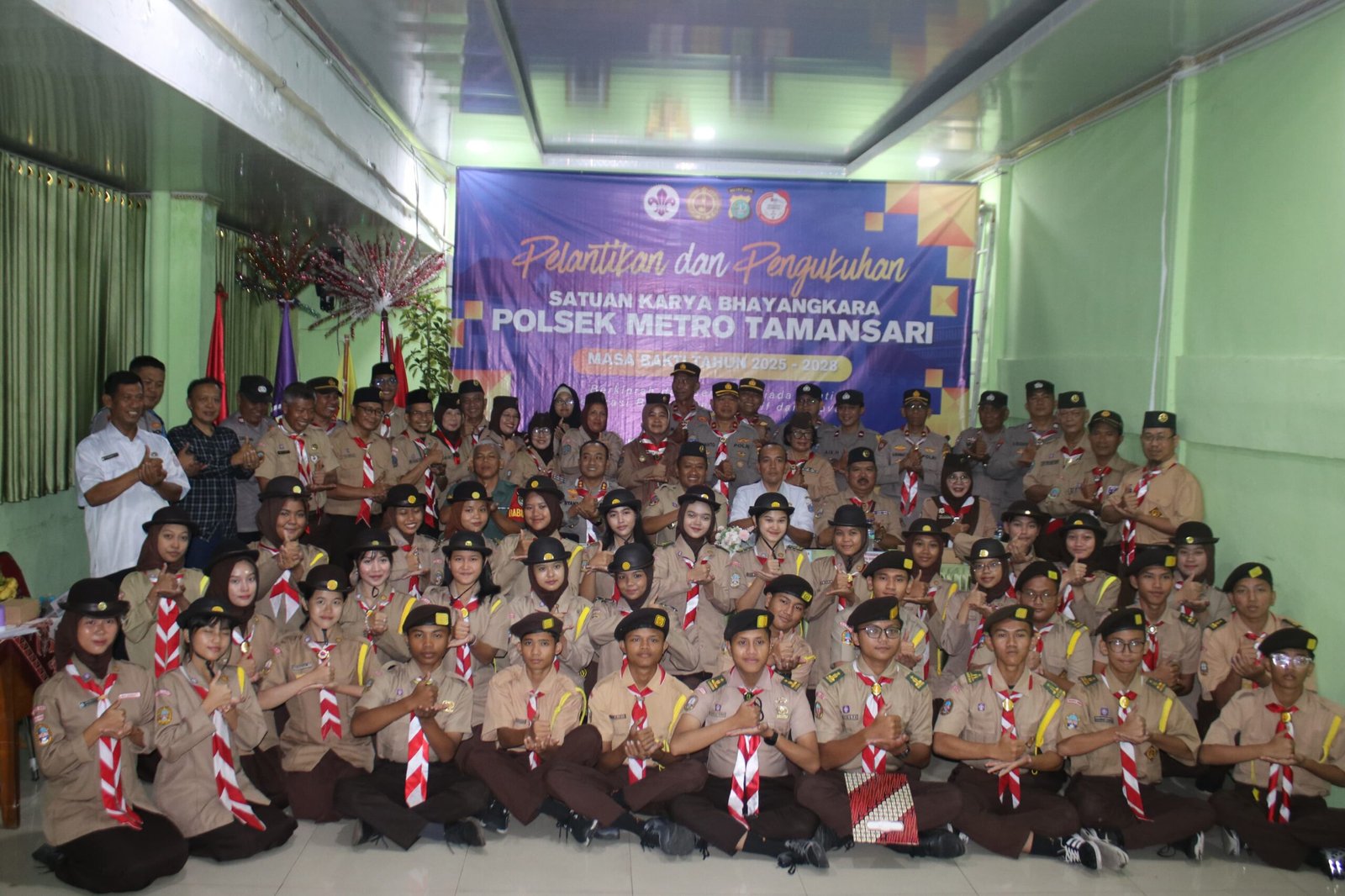Acara pengukuhan dihadiri langsung oleh Kapolsek Metro Tamansari AKBP Riyanto, S.H., S.I.K., M.A., didampingi Wakapolsek Kompol Ujang Rahmat Sutardi, S.H., serta unsur 3 Pilar Tamansari, jajaran kependidikan, dan perwakilan Gerakan Pramuka.