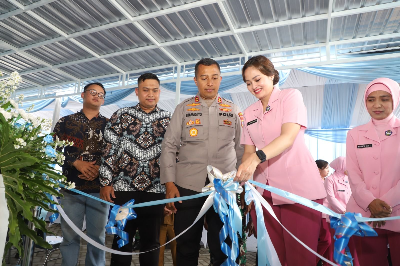 Peresmian dipimpin langsung oleh Kapolres Kediri AKBP Bramastyo Priaji, S.H., S.I.K., M.Si., didampingi Ketua Bhayangkari Cabang Kediri Ny. Ratih Bramastyo. Selain itu, dihadiri oleh Wakapolres Kediri, jajaran PJU Polres Kediri, Kapolsek Plosoklaten dan Wates, pengurus Bhayangkari Cabang Kediri, Forkopimcam Plosoklaten, serta para Kepala Sekolah penerima program.
