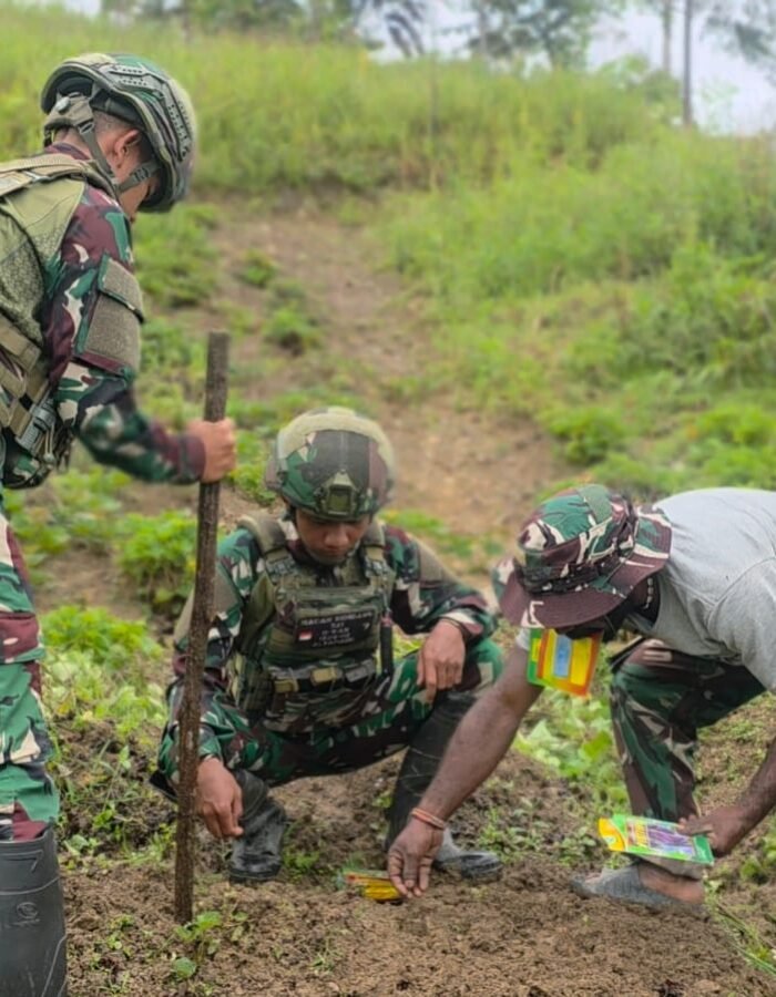 Selain Pembagian Bibit, Satgas Yonif 521/DY juga memberikan edukasi sederhana kepada warga mengenai cara penanaman dan perawatan tanaman agar hasil yang diperoleh lebih maksimal.