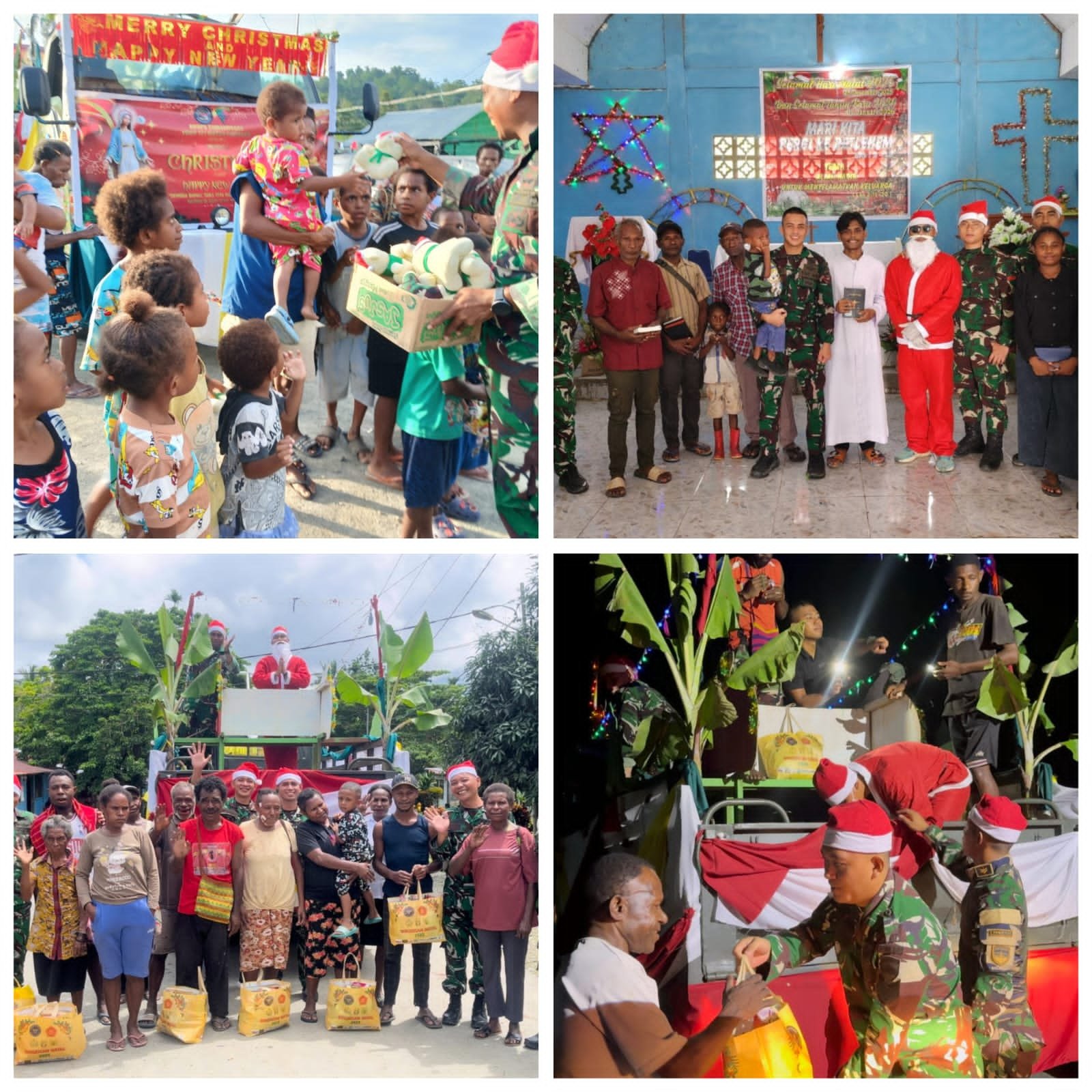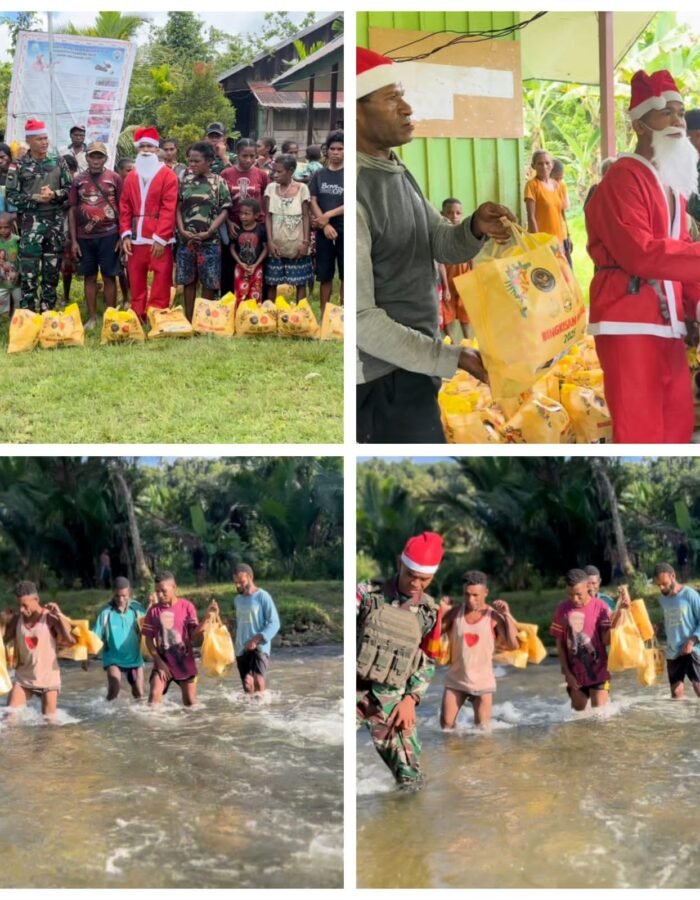 BATAVIAINEWS.COM Papua 25/12/25 – Meski dihadapkan pada cuaca yang kurang bersahabat serta medan dan akses jalan yang terbatas, semangat berbagi dan kebersamaan prajurit Yonif 121/Macan Kumbang tidak surut dalam memaknai Hari Raya Natal. Di tengah pelaksanaan tugas operasi pengamanan perbatasan, Yonif 121/MK tetap menggelar kegiatan Natal dengan penuh kreativitas dan inovasi sebagai wujud kepedulian serta pengabdian kepada masyarakat.