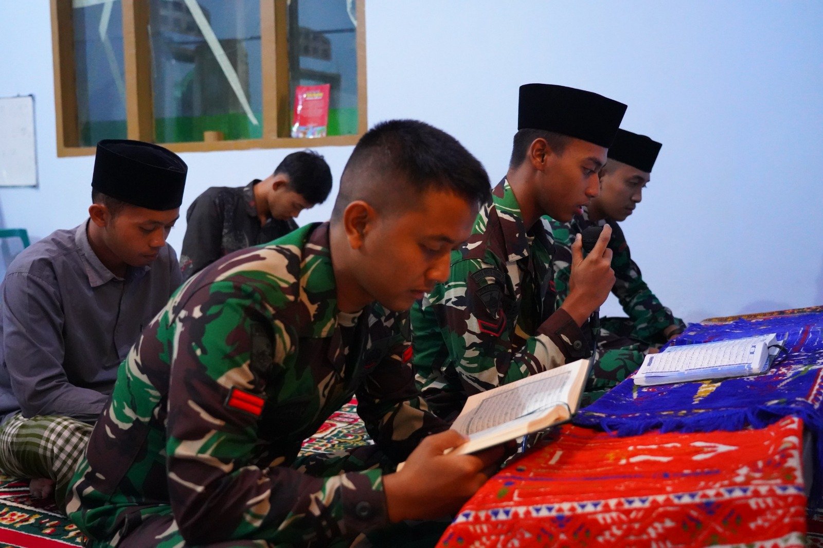BATAVIAINEWS.COM Blitar – Anggota Satgas TMMD ke-127 dari Kodim 0808/Blitar menunjukkan keteladanan selama bulan Ramadan. Meski menjalankan ibadah puasa dan melaksanakan pekerjaan fisik di siang hari, pada malam hari mereka tetap meluangkan waktu untuk melaksanakan tadarus Al-Qur’an bersama warga di Masjid Desa Krisik Kecamatan Gandusari Kabupaten Blitar, Sabtu (28/2/2026).