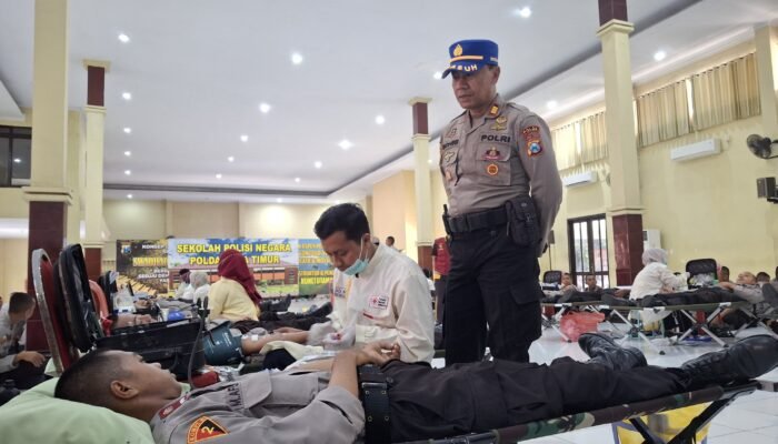 Kepala SPN Polda Jawa Timur, Kombes Pol Agus Wibowo, S.I.K., memberikan teladan dengan menjadi salah satu pendonor pertama.