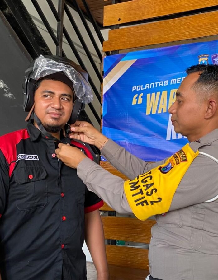 Para pengemudi ojol diajak untuk selalu mematuhi aturan lalu lintas, menggunakan perlengkapan keselamatan berkendara, serta menjadi pelopor keselamatan di jalan raya.