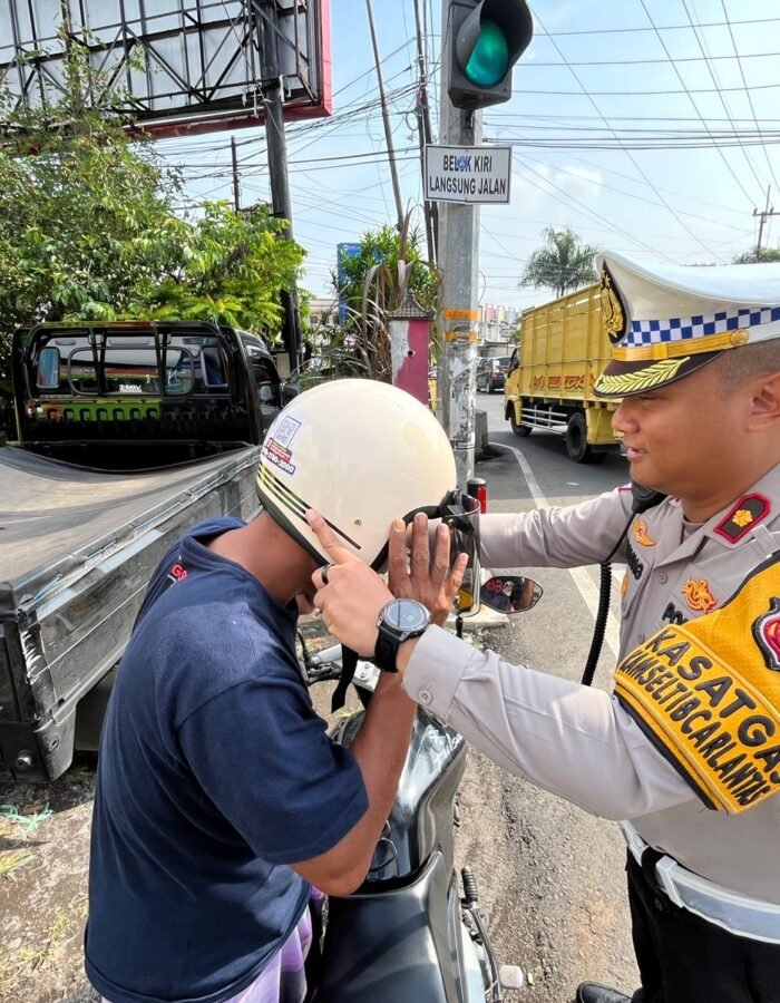 “Masyarakat menyambutnya dengan positif. Kami tidak melakukan penindakan, hanya teguran dan pembagian helm,” terangnya.