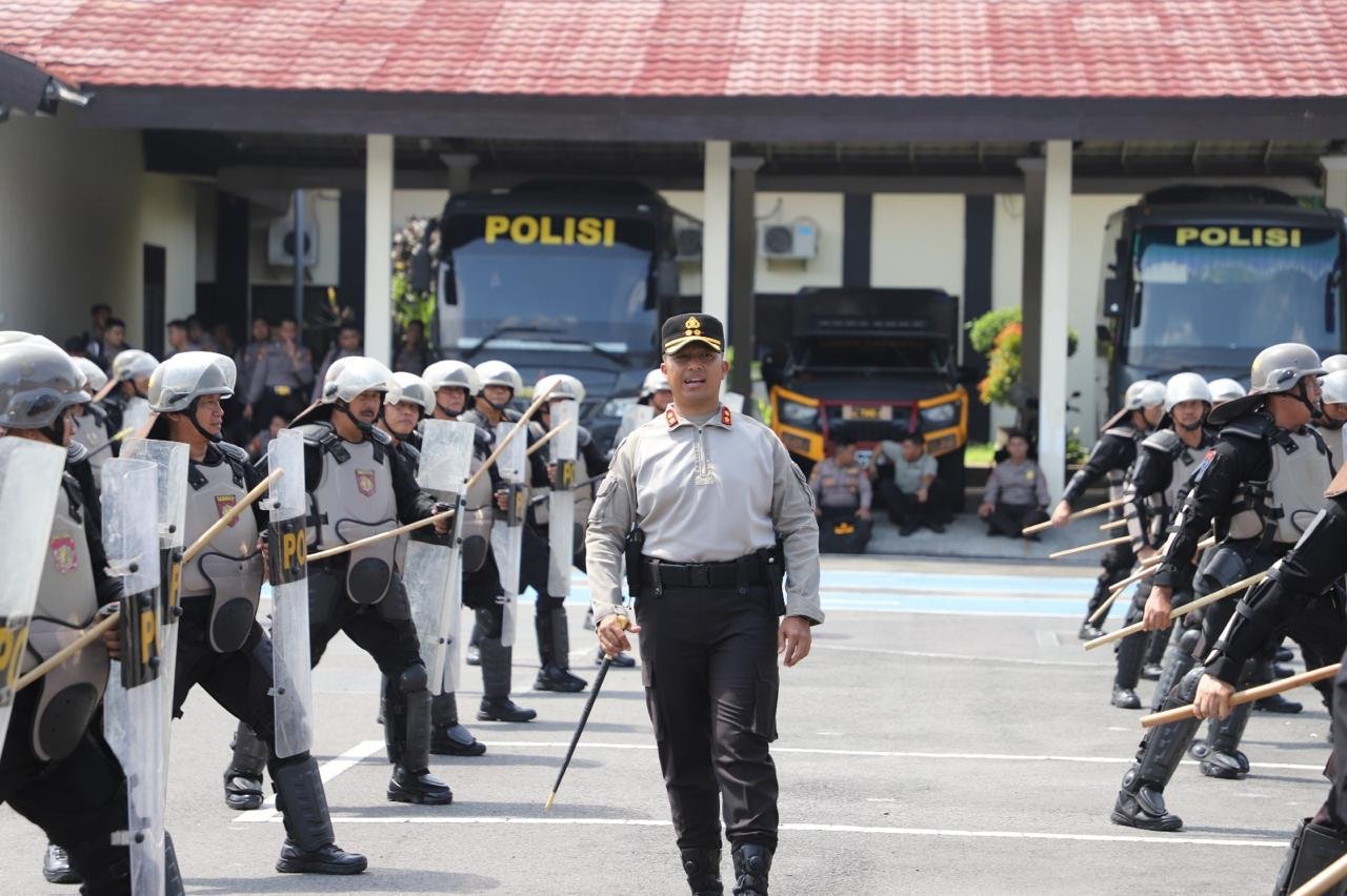 KEDIRI, BATAVIAINEWS.COM – Kapolres Kediri AKBP Bramastyo Priaji, S.H., S.I.K., M.Si., memimpin langsung pelatihan pengendalian massa (Dalmas) untuk PJU (Pejabat Utama) dan Kapolsek jajaran di lapangan apel Mapolres, Kamis 11 /12/2025. Kegiatan ini bertujuan meningkatkan kemampuan dan kesiapan personel dalam menghadapi situasi genting seperti unjuk rasa atau kerusuhan.
