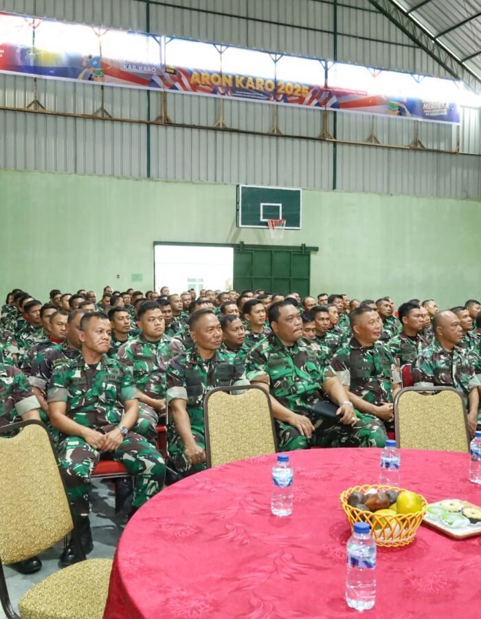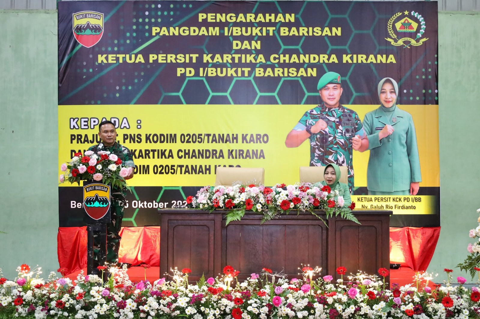 Bataviainews.com Karo – Pangdam I/Bukit Barisan Mayjen TNI Rio Firdianto bersama Ketua Persit KCK Daerah I/BB Ny. Galuh Rio Firdianto memberikan pengarahan kepada prajurit, PNS, dan Persit Kodim 0205/Tanah Karo bertempat di Makodim 0205/Tanah Karo, Rabu (15/10/2025).