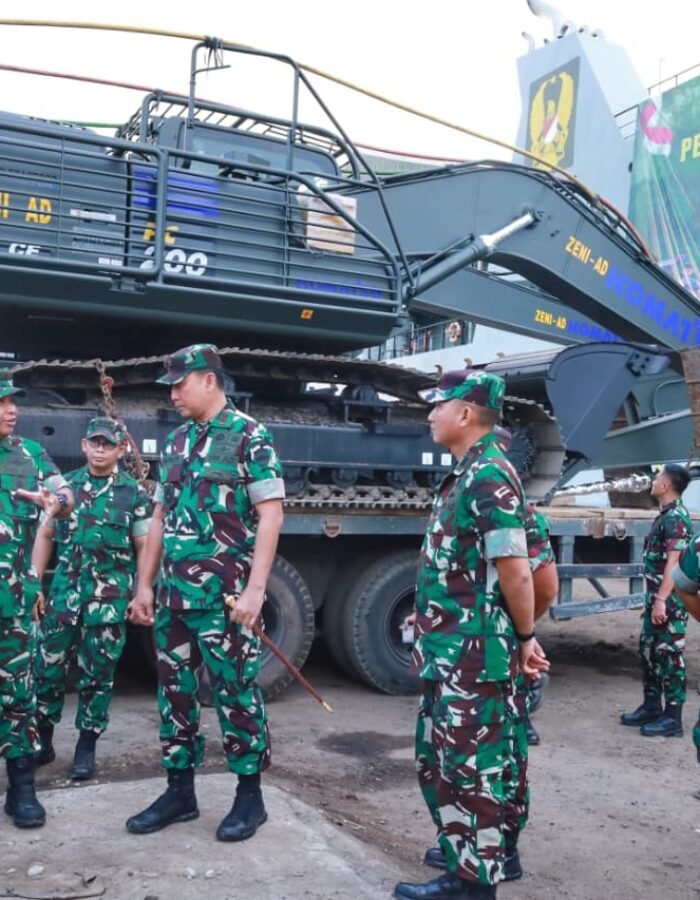BATAVIAINEWS.COM Belawan, –Pangdam I/Bukit Barisan Mayjen TNI Hendy Antariksa meninjau langsung kedatangan bantuan dari Kepala Staf Angkatan Darat (Kasad) Jenderal TNI Maruli Simanjuntak yang diangkut menggunakan Kapal ADRI LIII di Dermaga 202 Ujung Baru, Pelabuhan Belawan, Senin (12/1/2026).