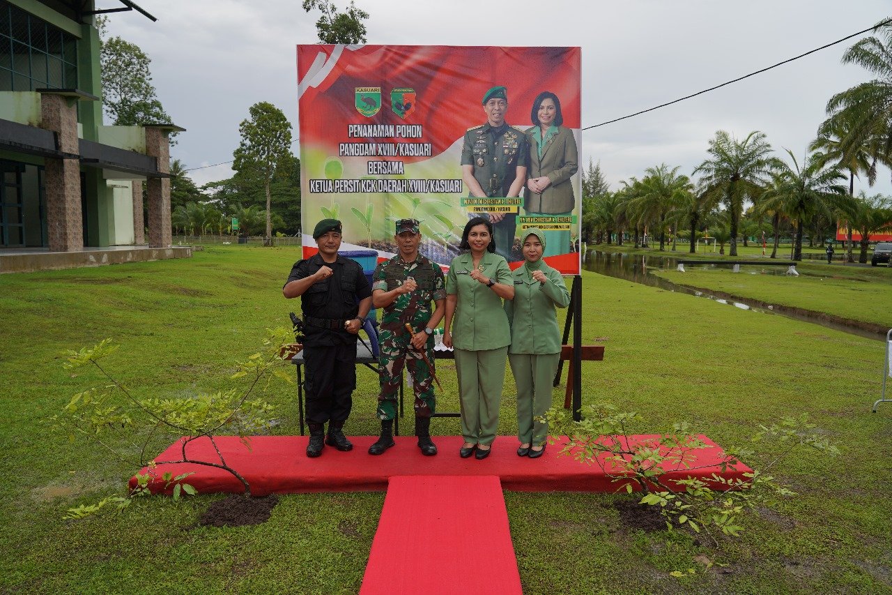 Kegiatan kunjungan ini juga dimeriahkan dengan aksi kepedulian terhadap lingkungan. Pangdam bersama Ibu Ketua Persit melakukan penanaman pohon di sekitar lingkungan Yonif 762/VYS sebagai bentuk komitmen terhadap pelestarian alam. Selain itu, dilakukan pula penyebaran bibit ikan di kolam satuan sebagai simbol keberlanjutan dan kemandirian di lingkungan militer.