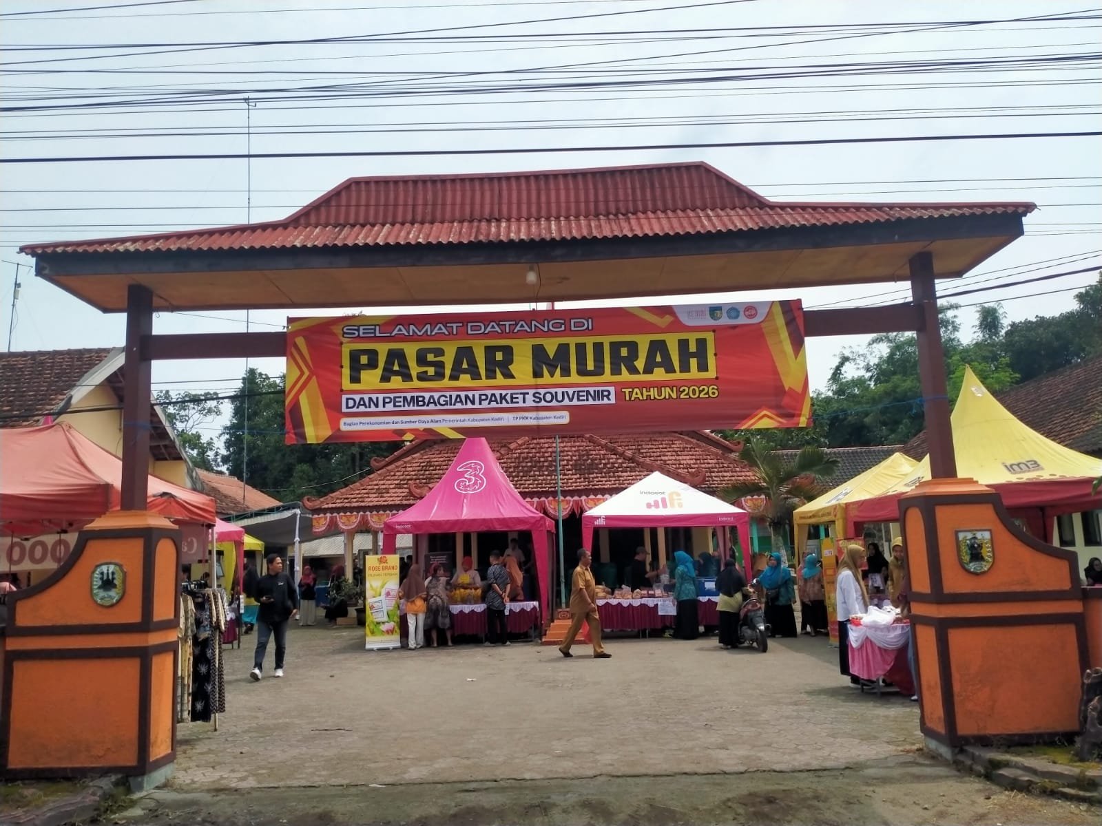 BATAVIAINEWS COMKEDIRI – Pemkab Kediri melalui bagian Perekonomian bekerjasama dengan UMKM Desa Kayunan dan Kabupaten Kediri mengadakan pasar murah dan pembagian paket souvenir di desa Kayunan, Kecamatan Plosoklaten, Kabupaten Kediri, Senin (2/3/2026).