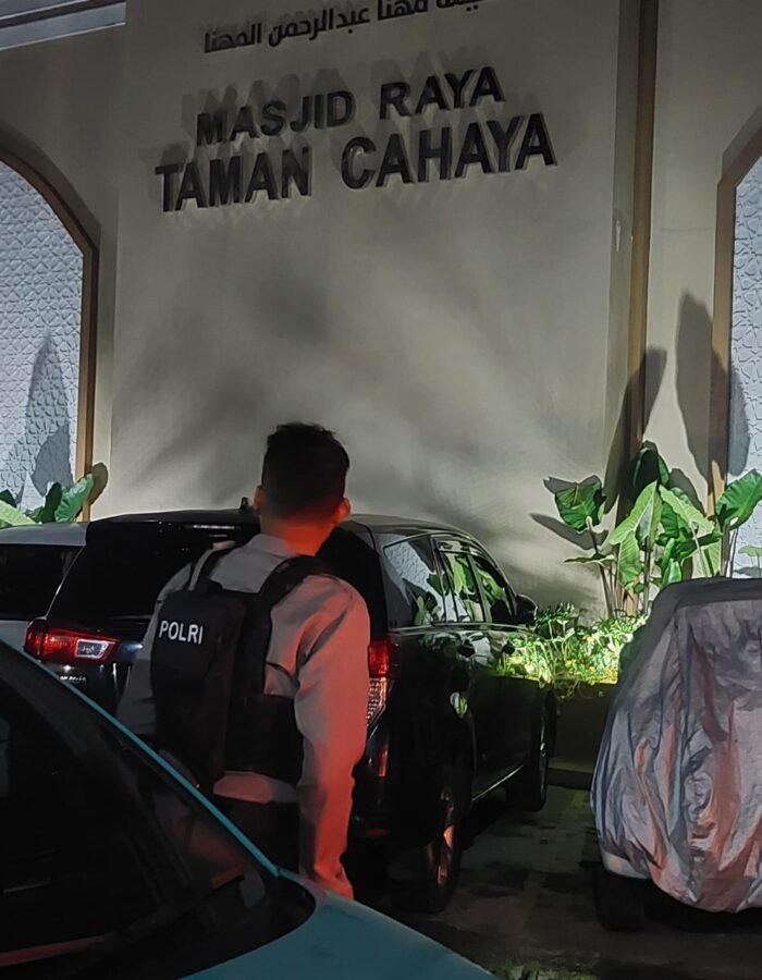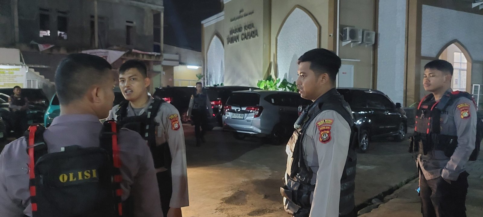 Kehadiran personel kepolisian di sekitar area masjid tidak hanya melakukan pengawasan, tetapi juga memberikan rasa tenang bagi para jamaah yang datang bersama keluarga untuk menunaikan Salat Isya dan Tarawih.