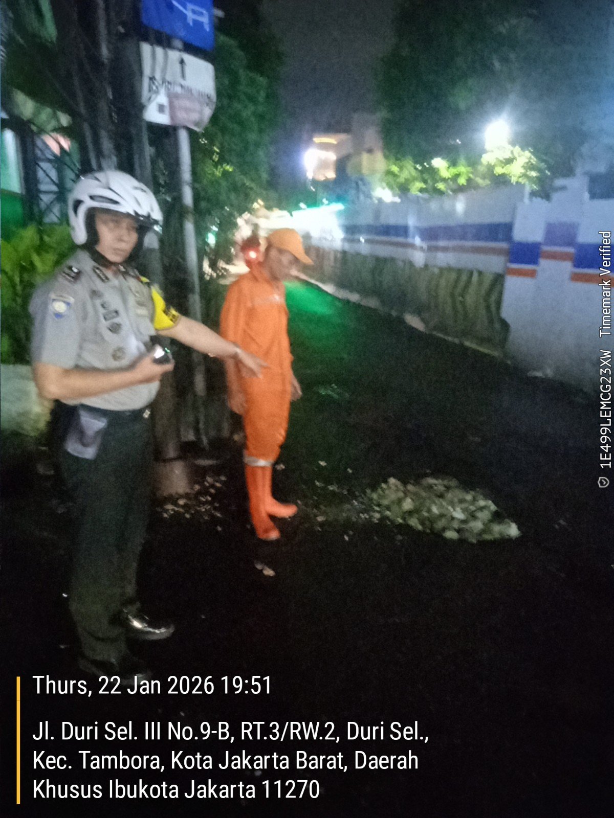 Kapolsek Tambora Polres Metro Jakarta Barat Kompol Muhamad Kukuh Islami, S.I.K., M.I.K., menyampaikan bahwa kehadiran Bhabinkamtibmas di tengah masyarakat tidak hanya bertugas menjaga keamanan, namun juga aktif berperan dalam membantu menyelesaikan permasalahan lingkungan yang berpotensi mengganggu keselamatan dan ketertiban umum.