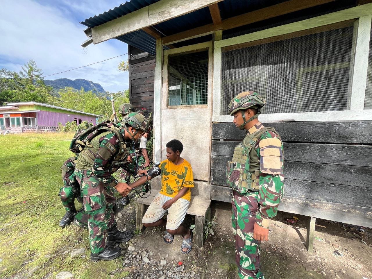 Distrik Kelila, –BATAVIAINEWS.COM-Personil Satgas Pamtas Kewilayahan Yonif 521/DY Pos Kelila melaksanakan memeriksa kesehatan warga yang sedang sakit secara gratis di Distrik Kelila, Mamberamo Tengah, Papua Pegunungan (10/12/2025).