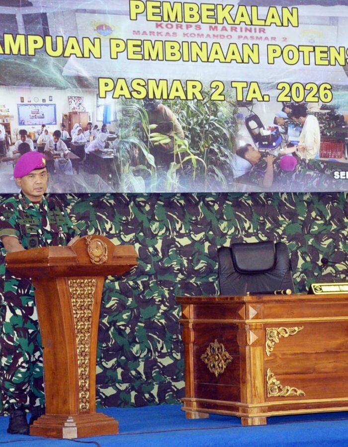 BATAVIAINEWS.COM SIDOARJO – Bertempat di Graha Gafur Chalik Mako Pasmar 2 Kesatrian Moekijat Gedangan Sidoarjo, Komandan Pasmar 2 secara resmi membuka Acara Pembekalan Kemampuan Pembinaan Potensi Maritim TW. I TA. 2026 (10/3).