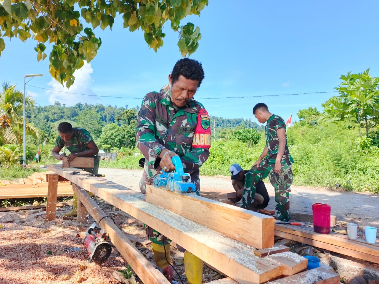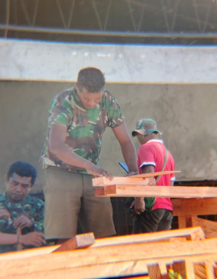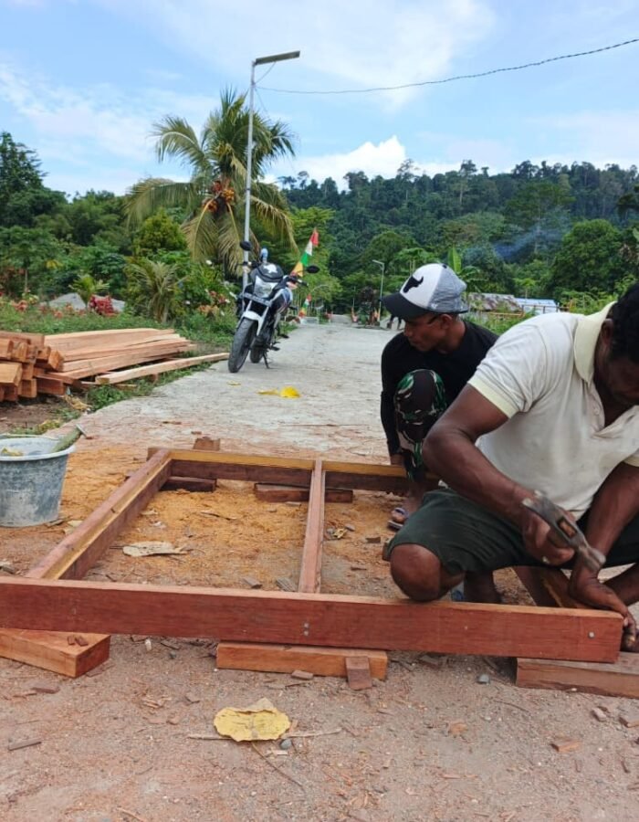 BATAVIAINEWS.COM [ Manokwari Utara ]– Satgas TMMD ke 128 Kodim 1801/Manokwari memulai mengerjakan pembuatan kusen pintu dan jendela untuk pembangunan empat unit rumah yang menjadi sasaran fisik TMMD di Kampung Tanah Rubuh, Distrik Manokwari Utara, Kabupaten Manokwari. Selasa (28/04/2026)