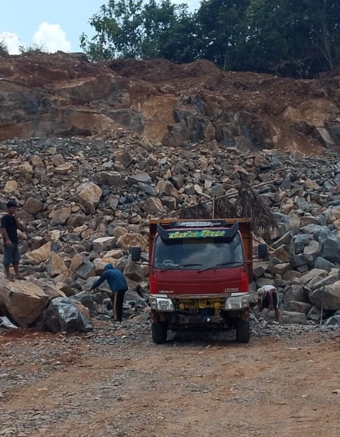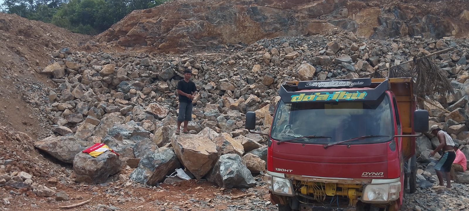 Setiap harinya ada puluhan truk yang memuat batu juga masih bebas aja keluar masuk lokasi tambang.