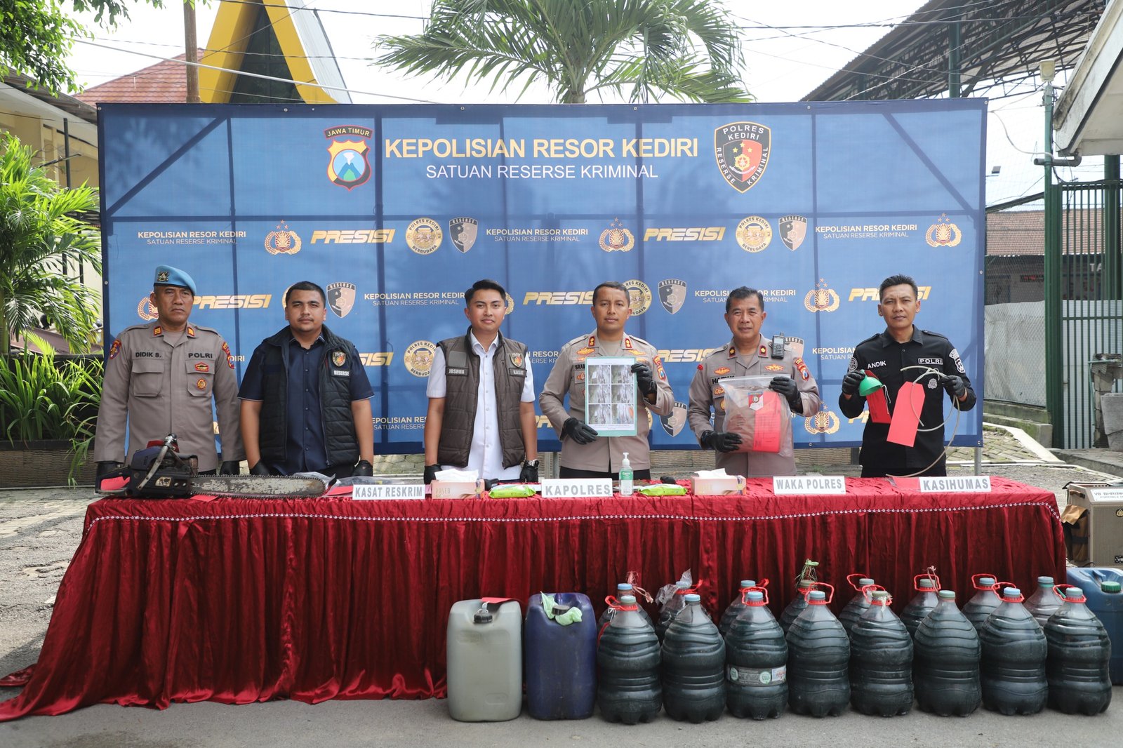 “Tindak pidana illegal logging ini terjadi di wilayah Kandangan dengan lokasi petak yang berbeda. Berdasarkan alat bukti, tersangka ES (44) telah diamankan, sementara pelaku lain masih dalam pengejaran,” ujar Kapolres Kediri.