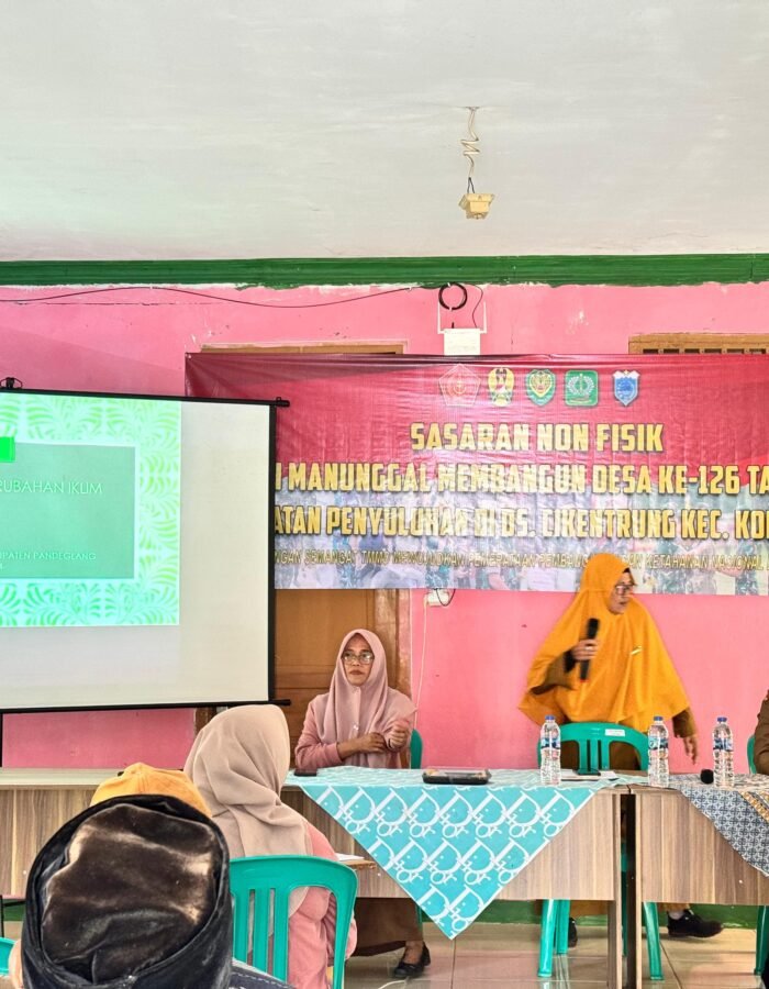 BATAVIAINEWS.COM PANDEGLANG — Dalam rangka mendukung program TNI Manunggal Membangun Desa (TMMD) ke-126 Tahun Anggaran 2025, kegiatan non-fisik terus dilaksanakan secara berkesinambungan oleh Satgas TMMD bersama instansi terkait. Salah satu kegiatan penting yang digelar adalah penyuluhan tentang lingkungan hidup sehat yang disampaikan oleh Ibu Dyah Lukitaningsih, penyuluh lingkungan dari instansi terkait, bertempat di Balai Desa Cikentrung, Kecamatan Kroncong, Kabupaten Pandeglang.(22 Oktober 2025)