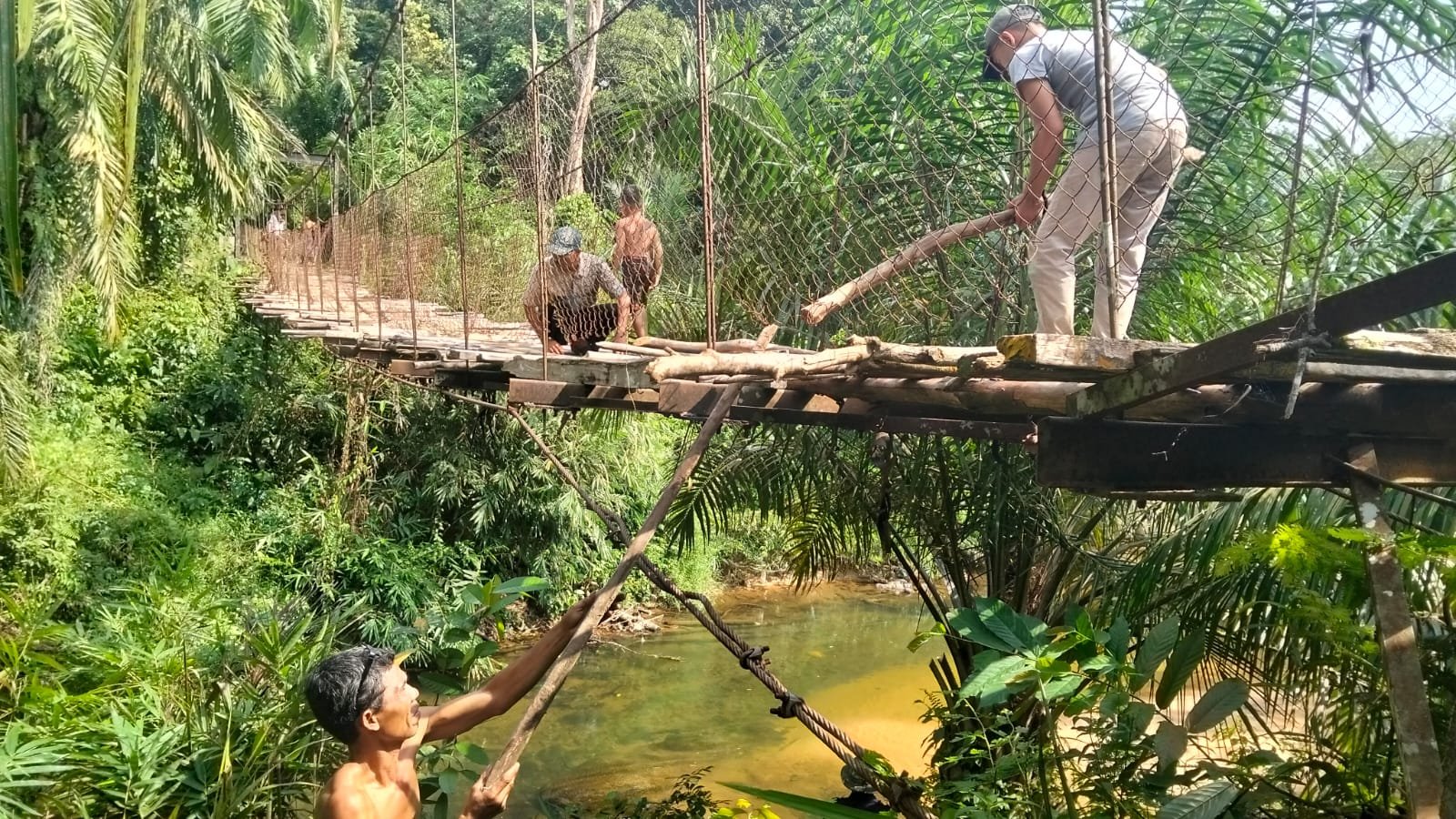 Pengerjaan dilakukan secara gotong royong bersama masyarakat setempat. Sinergi tersebut mempercepat proses perbaikan hingga selesai dan jembatan kembali siap difungsikan sebagai jalur penghubung antarwilayah.