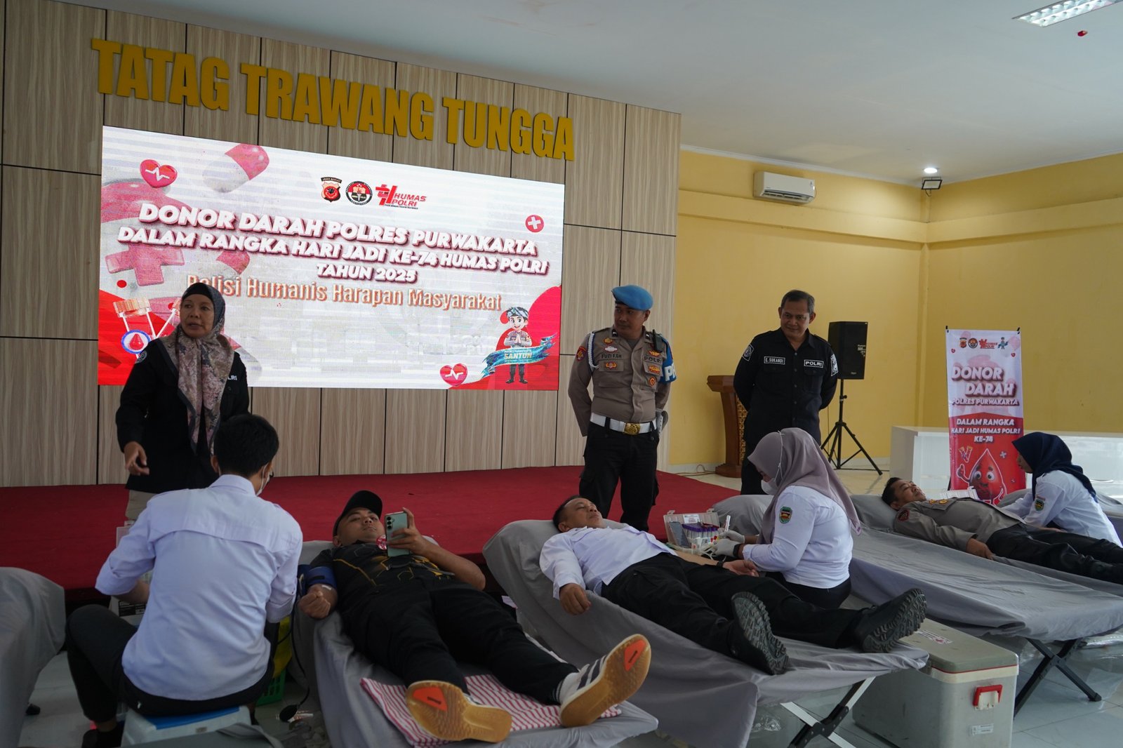 BATAVIAINEWS.COM PURWAKARTA – Dalam rangka memperingati Hari Jadi Humas Polri ke-74 Tahun 2025, Polres Purwakarta menggelar kegiatan Donor Darah Serentak yang berlangsung di Aula Tatag Trawang Tungga Polres Purwakarta, pada Rabu, 22 Oktober 2025.