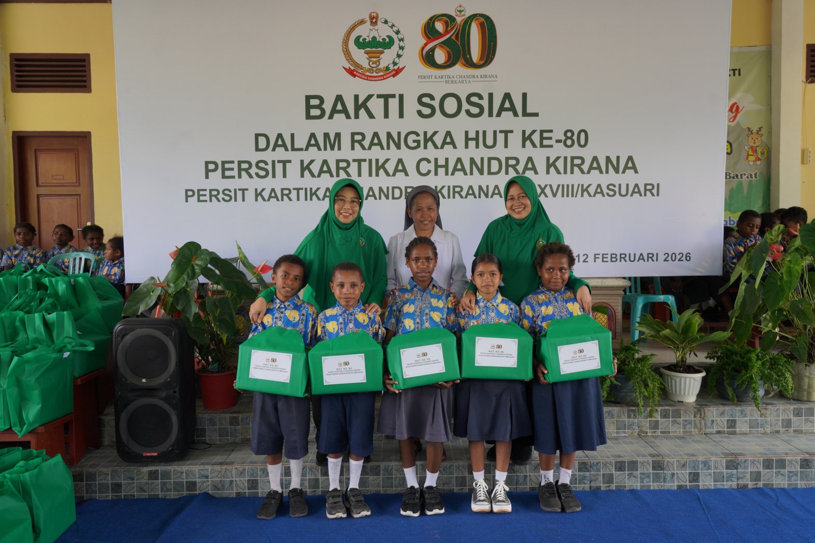 BATAVIAINEWS.COM Manokwari –Dalam rangka memperingati Hari Ulang Tahun ke-80 Persit Kartika Chandra Kirana, Persit KCK PD XVIII/Kasuari menggelar bakti sosial di Panti Asuhan Santa Maria Yayasan Amal Dharma Bakti, SP 8 Masni, Kabupaten Manokwari, Kamis (12/2/2026).