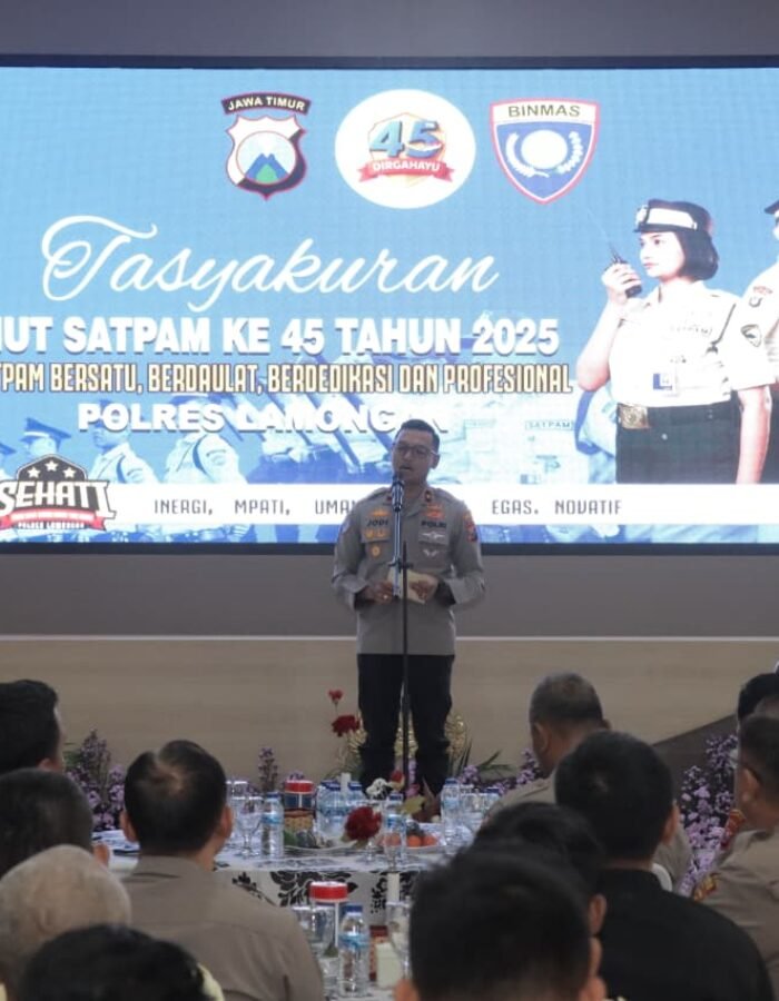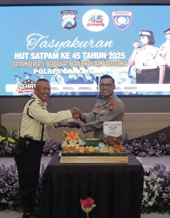 BATAVIAINEWS.COM LAMONGAN – Polres Lamongan Polda Jatim menggelar kegiatan Tasyakuran dalam rangka memperingati Hari Ulang Tahun (HUT) Satuan Pengamanan (Satpam) ke-45 Tahun 2025.