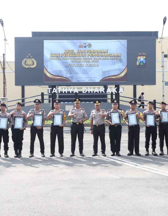 BATAVIAINEWS.COM Kediri– Apel jam pimpinan di lingkungan Polres Kediri, Senin (6/4/2026), diwarnai pemberian penghargaan kepada personel berprestasi sebagai bentuk apresiasi atas dedikasi dan kinerja dalam pelaksanaan tugas.