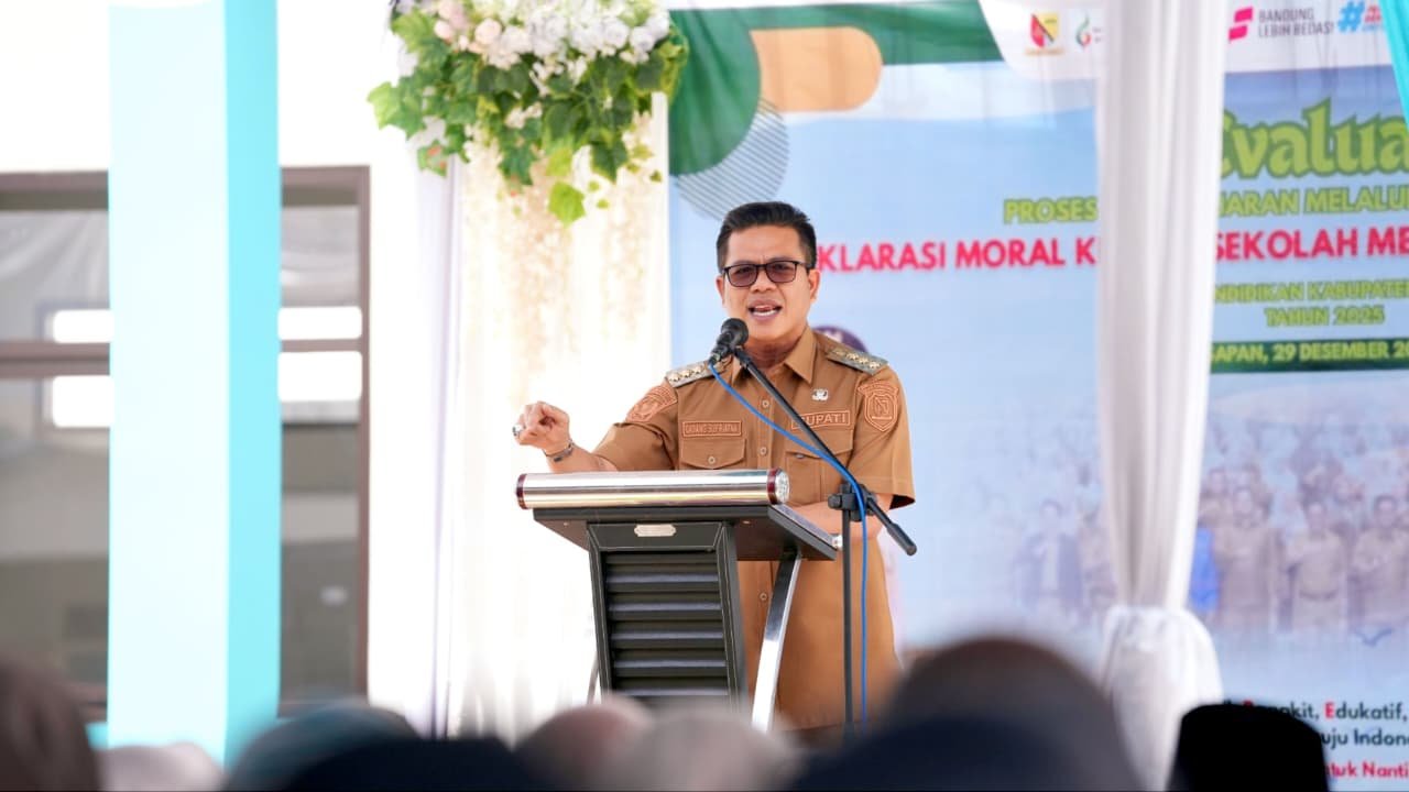 BATAVIAINEWS.COM KABUPATEN BANDUNG — Peran TP PKK Kabupaten Bandung semakin menguat sebagai mitra strategis pemerintah dalam mendukung Program Nasional Makan Bergizi Gratis (MBG) melalui penguatan Gerakan Tanami Halaman (GERTAMAN). Komitmen ini ditegaskan dalam kegiatan Pengajian Bulanan dan Doa Bersama Akhir Tahun 2025, Senin (29/12/2025), di Gedung Moh. Toha, Soreang yang dirangkaikan dengan penyerahan simbolis bantuan kebencanaan dari Bank BJB melalui Pemerintah Kabupaten Bandung.