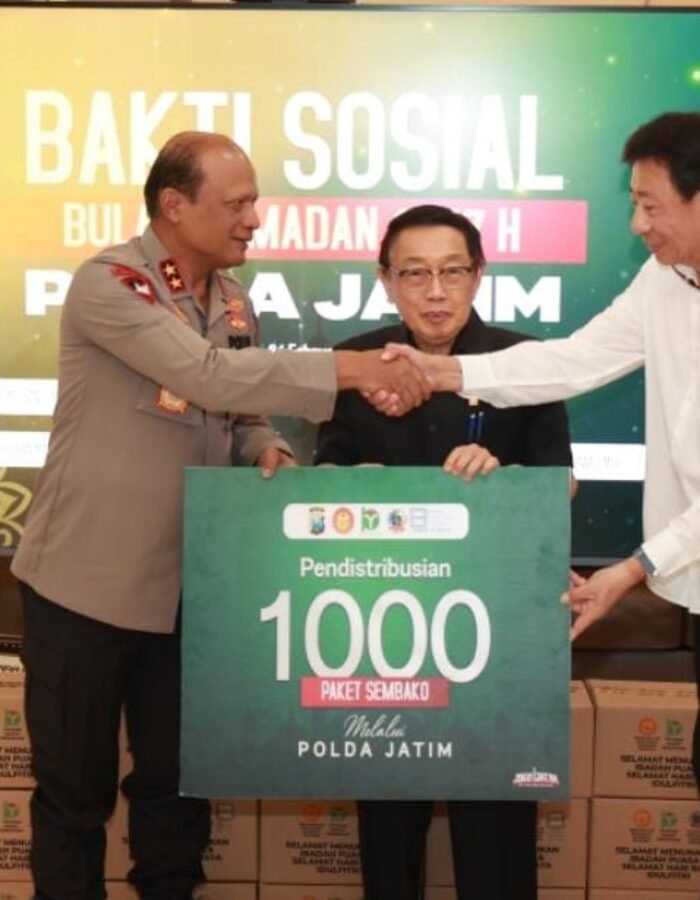 BATAVIAINEWS.COM SURABAYA – Kepolisian Daerah Jawa Timur menerima penyerahan bantuan sosial dari Yayasan Bakti Persatuan Yayasan Bakti Persatuan berupa 1.000 paket sembako di Lobi Gedung Tribrata Mapolda Jatim, Selasa (24/2/2026).