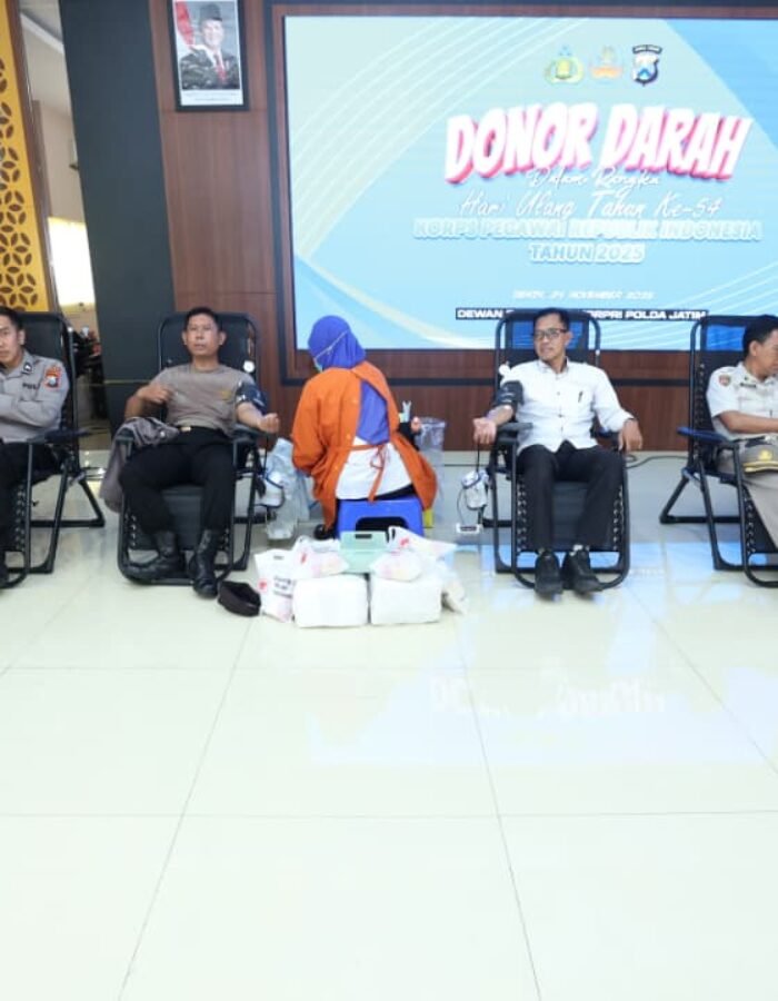BATAVIAINEWS.COM SURABAYA – Menyongsong Hari Ulang Tahun ke-54 Korps Pegawai Republik Indonesia (Korpri), Polda Jawa Timur menggelar kegiatan donor darah di Aula Gedung Bhayangkari, Senin (24/11/2025).