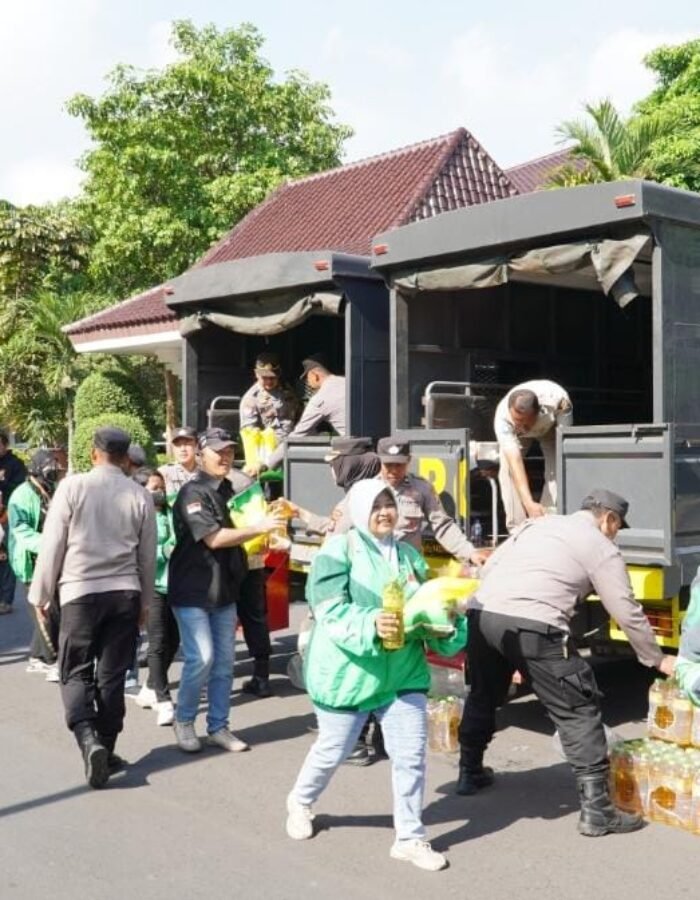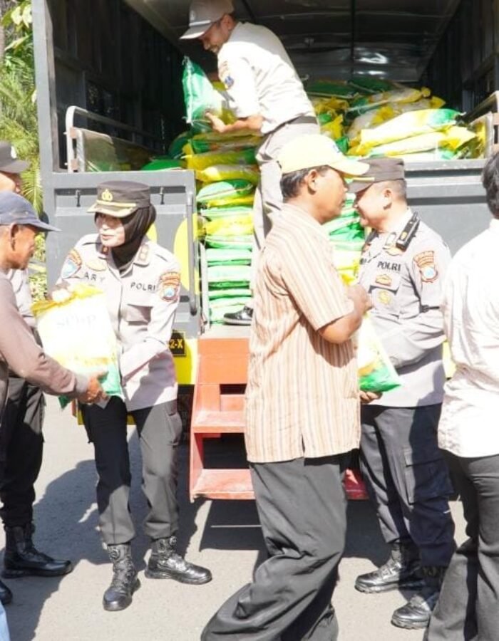Pada kegiatan ini, Polda Jatim menyalurkan 1.050 paket beras SPHP masing-masing seberat 5 kilogram dan 1.000 liter minyak goreng merek Kita.