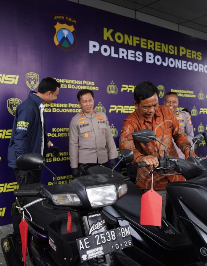 Dalam kesempatan yang sama, Polres Bojonegoro Polda Jatim menyerahkan kembali kendaraan milik korban yang sempat dicuri.