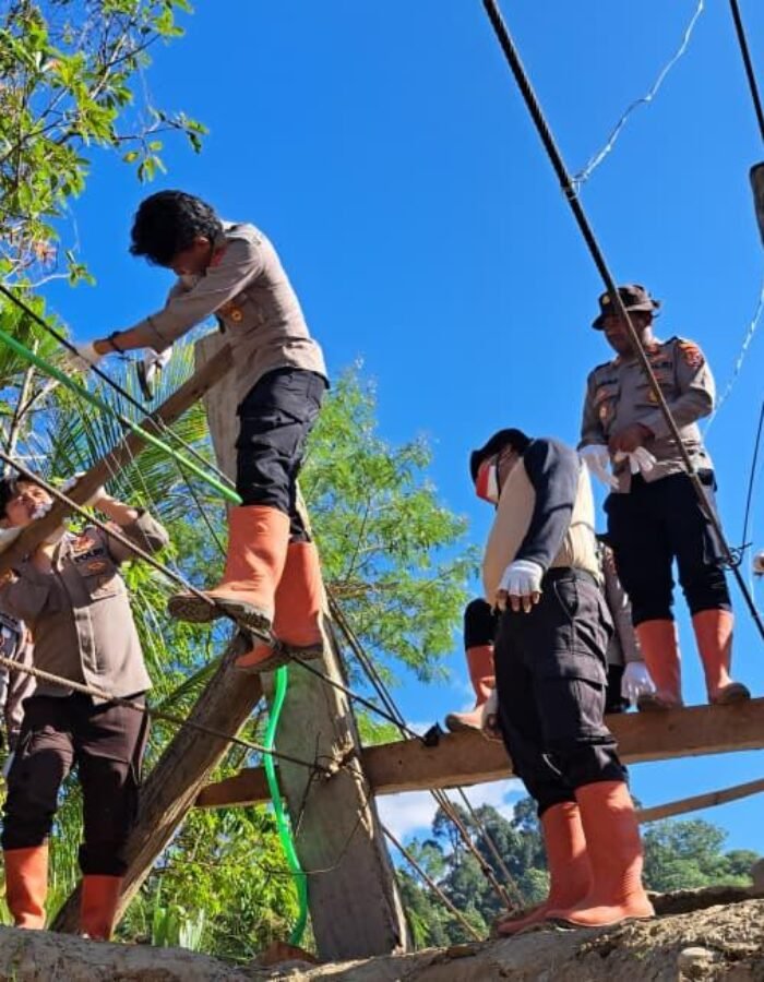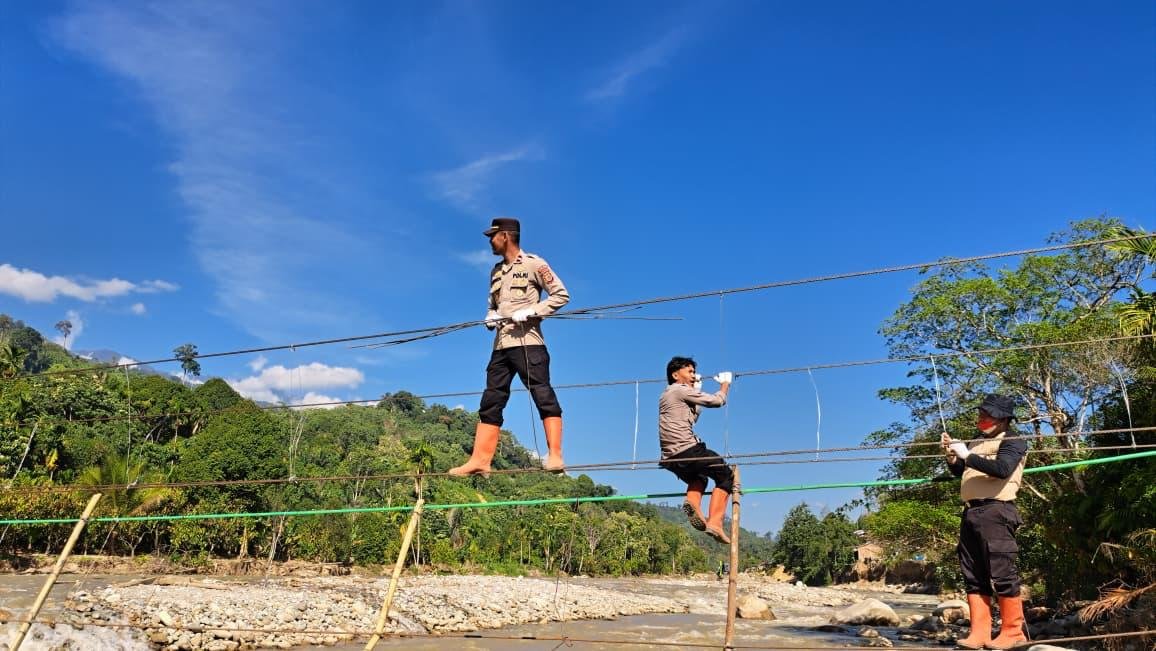 BATAVIAINEWS.COM Gayo Lues — Kepolisian Resor (Polres) Gayo Lues menunjukkan kepedulian dan empati kepada masyarakat terdampak bencana hidrometeorologi dengan turun langsung mendampingi warga dalam pembangunan empat unit jembatan gantung di sejumlah desa wilayah Kecamatan Putri Betung, Kabupaten Gayo Lues, pascabencana banjir bandang.