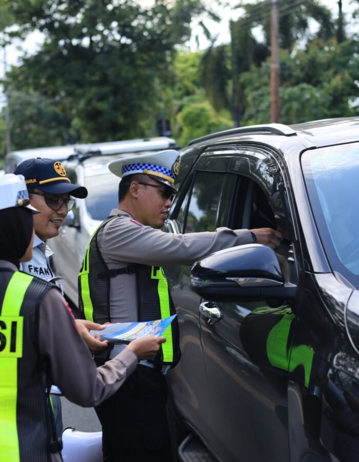 Dalam Operasi Keselamatan Semeru 2026, petugas menggelar aksi simpatik di kawasan Gresik Kota Baru (GKB) dengan memberikan edukasi langsung sekaligus membagikan cokelat kepada pengguna jalan yang tertib.