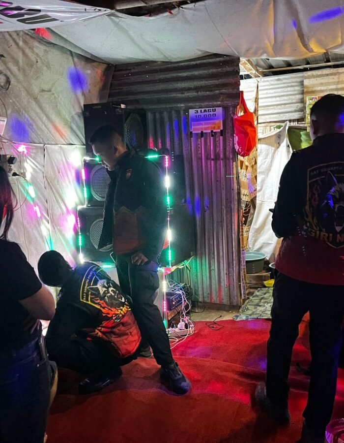 Selanjutnya, petugas bergeser ke Desa Bringkang. Di lokasi ini, petugas mendapati sebuah warung karaoke yang masih beroperasi dengan alunan musik keras.
