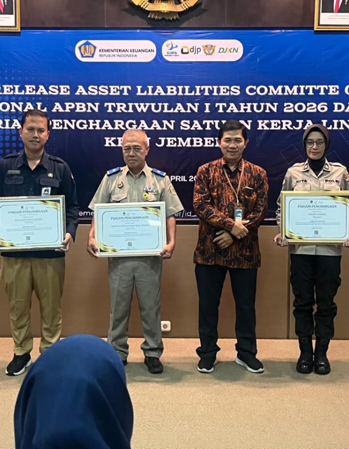 Dalam kegiatan press release Aset Liabilities Committee (ALCo) Regional APBN Triwulan I Tahun 2026, satuan kerja Polres Jember berhasil meraih tiga penghargaan sekaligus dari Kantor Pelayanan Perbendaharaan Negara (KPPN) Jember, Selasa, (14/4/2026)
