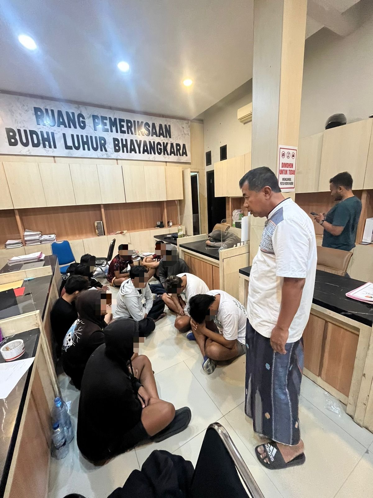 Hasil penyelidikan kemudian dikembangkan oleh tim gabungan Unit Resmob Satreskrim Polres Kediri bersama Unit Reskrim Polsek Kandat dan Polsek Ngancar. Dari pengembangan tersebut, 13 orang terduga pelaku diamankan di sejumlah lokasi berbeda pada Senin (6/4/2026) malam.