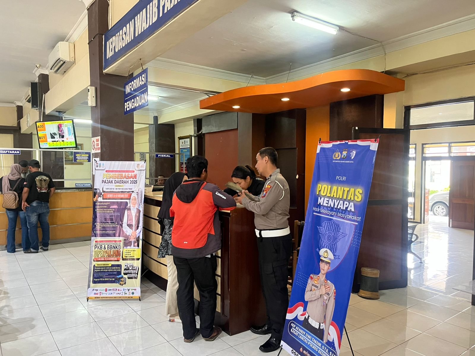 Kasat Lantas AKP Afandy menambahkan, “Personel kami tidak hanya hadir untuk menegakkan hukum, tetapi juga menjadi pelayan masyarakat. Kami menyapa dengan ramah dan humanis serta memberikan informasi yang dibutuhkan, dan membantu menyelesaikan persoalan wajib pajak dengan sigap bila ada kendala,” imbuhnya