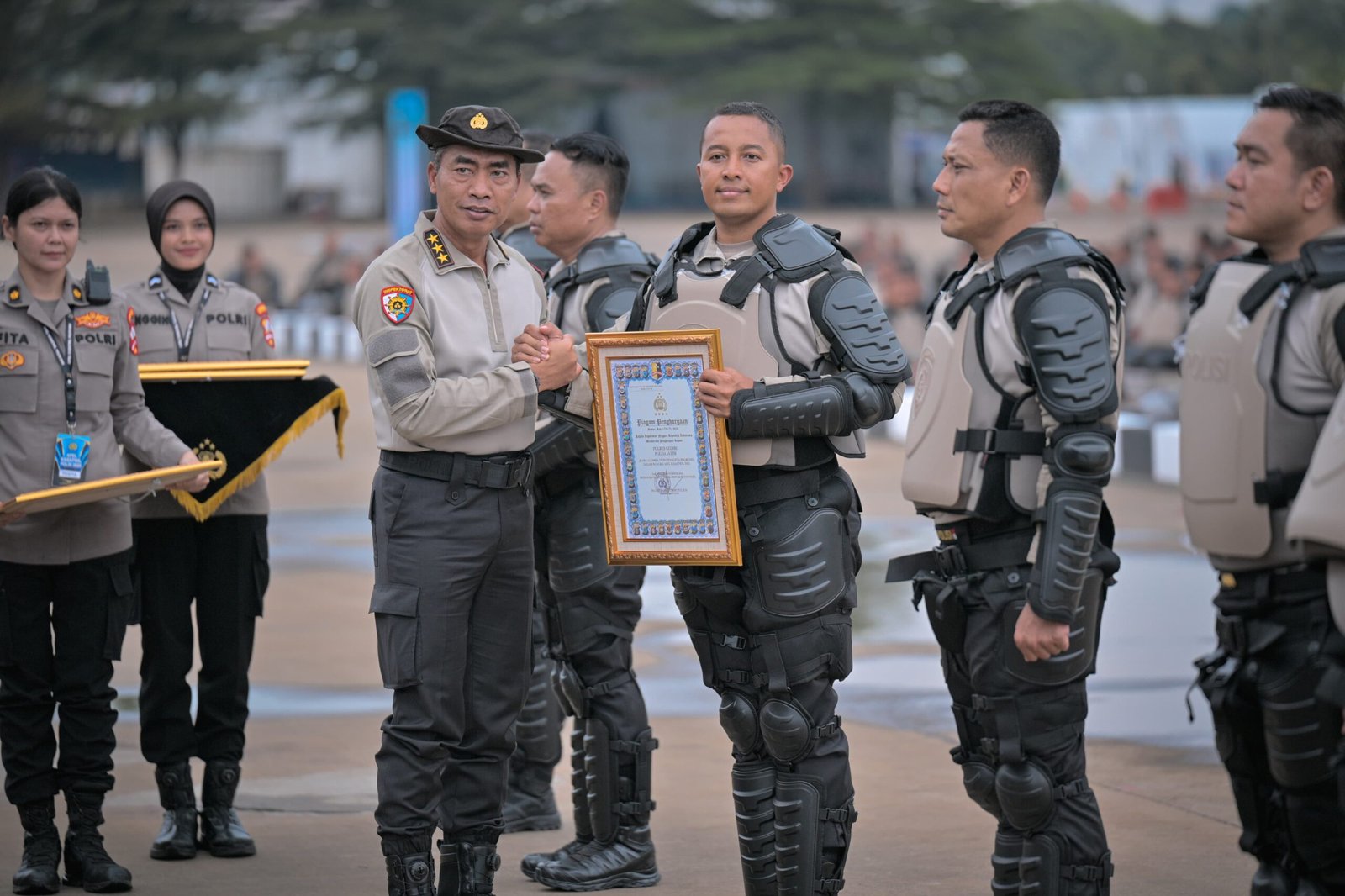 Penyerahan penghargaan dilakukan pada sesi Penutupan Apel Kasatwil Polri 2025, usai simulasi pengamanan unjuk rasa serta latihan pengendalian massa yang diikuti oleh seluruh Kapolres se-Indonesia di lapangan Nagara Yanottama Mako Satlat Korbrimob Polri Cikeas Kec. Gunung Putri Kab. Bogor.