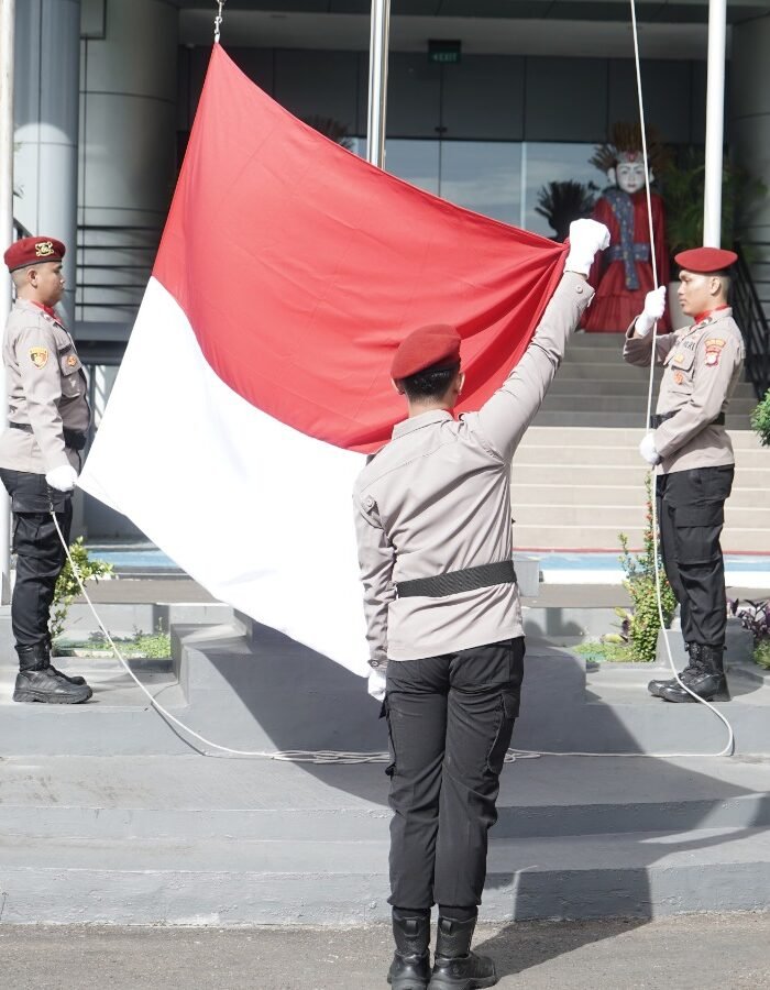 Sebanyak 204 personel mengikuti upacara dengan semangat kebangsaan yang tinggi.